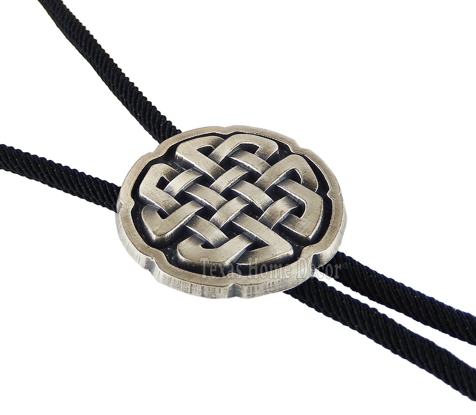 Celtic Knot Bolo Tie Real Silver Plated 35" Fiber Sky Systems Braided Cord