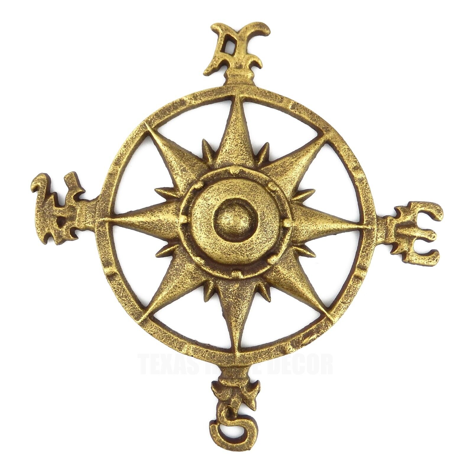 Compass Rose Nautical Star Beach House Wall Decor Rustic Gold Cast Iron #MA-2043