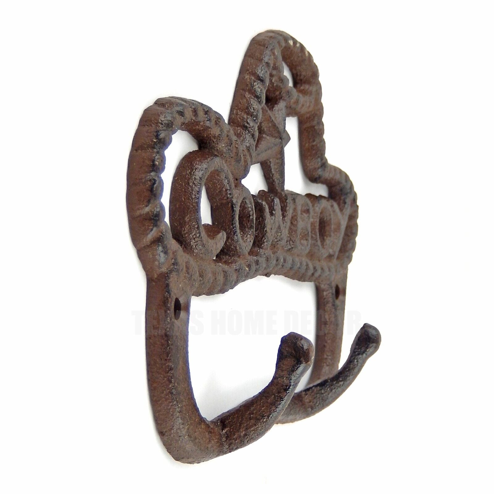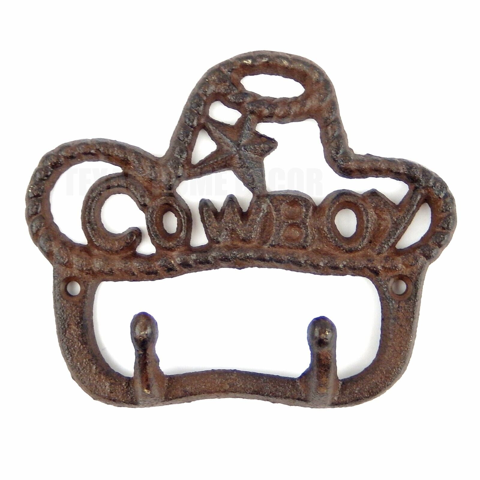 Cowboy Hat Star Double Wall Hook Cast Iron Coat Towel Key Hanger Rustic Western