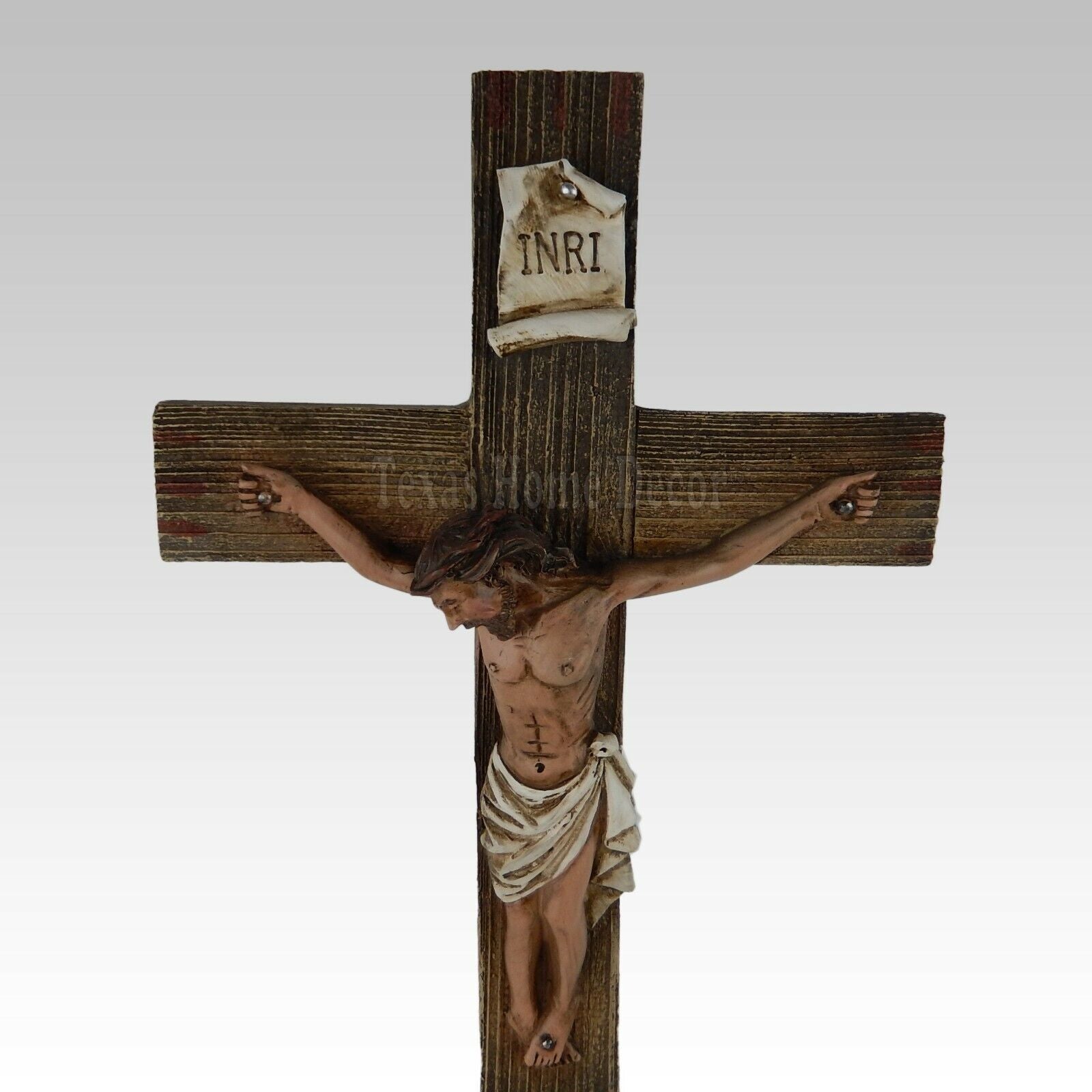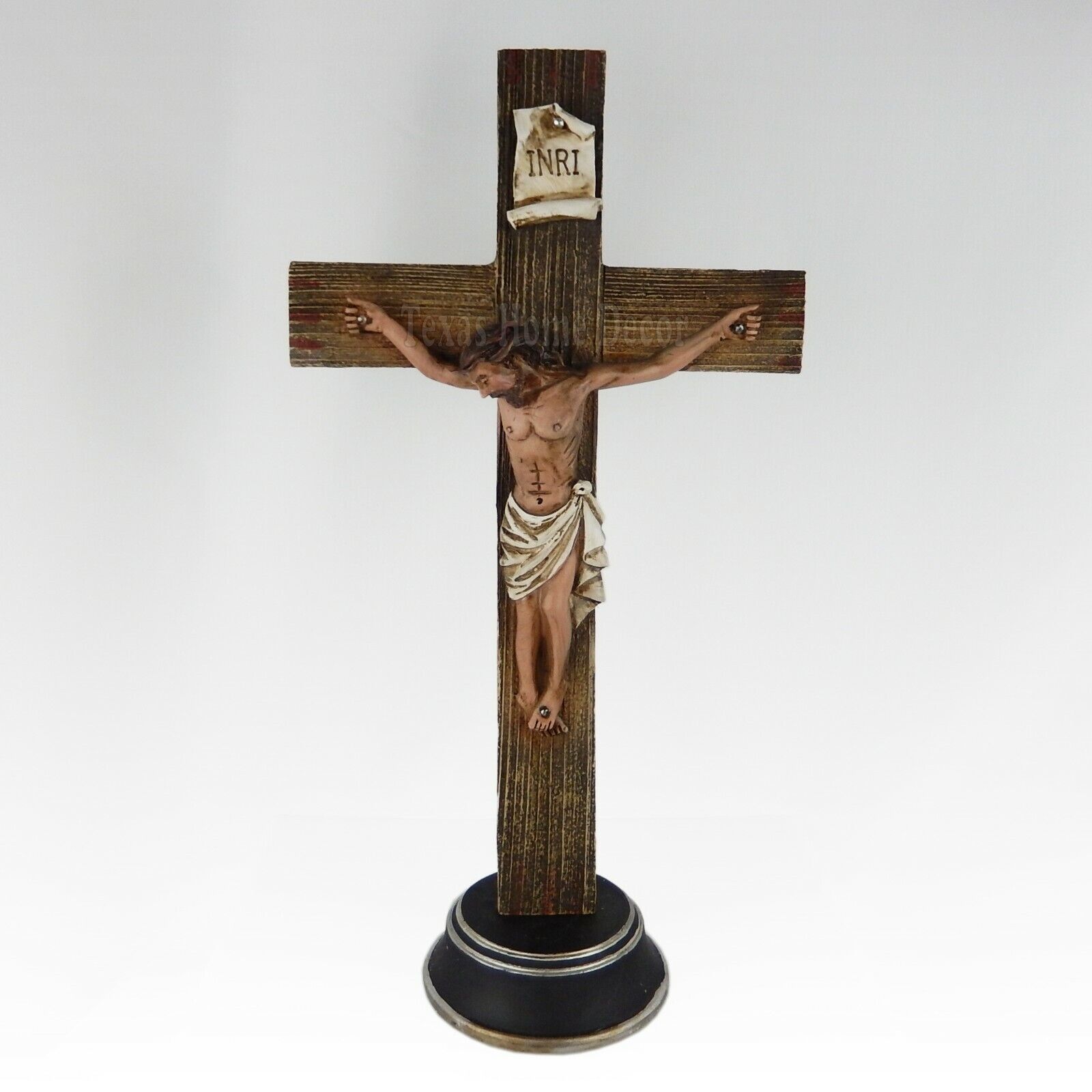 Crucifix Standing Cross INRI Jesus Religious Hand Painted Polyresin 12 3/8" Tall