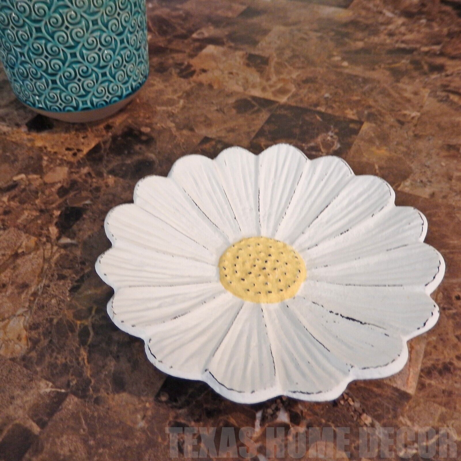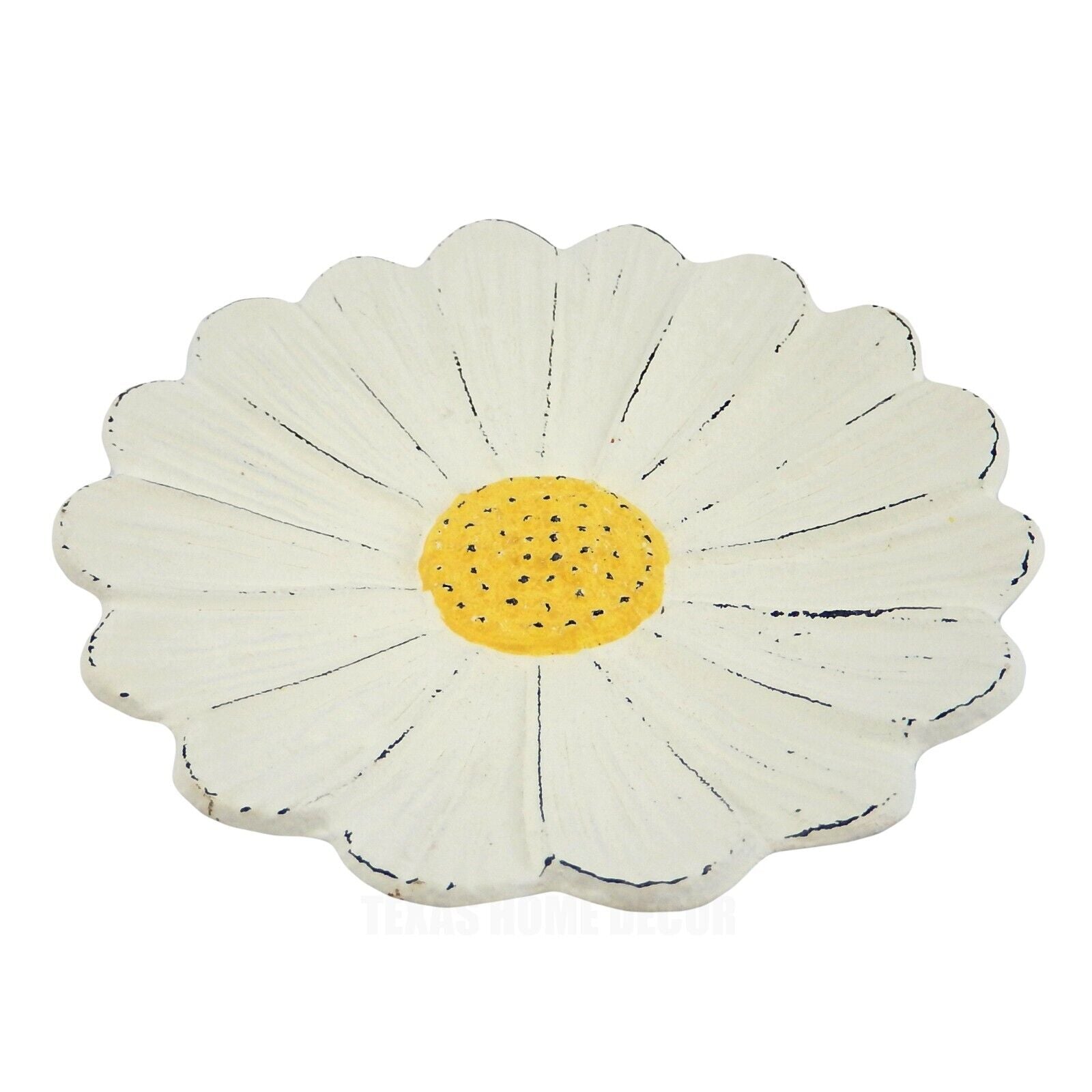 Daisy Flower Trinket Key Dish Jewelry Holder Heavy Duty Cast Iron Antique White #10029