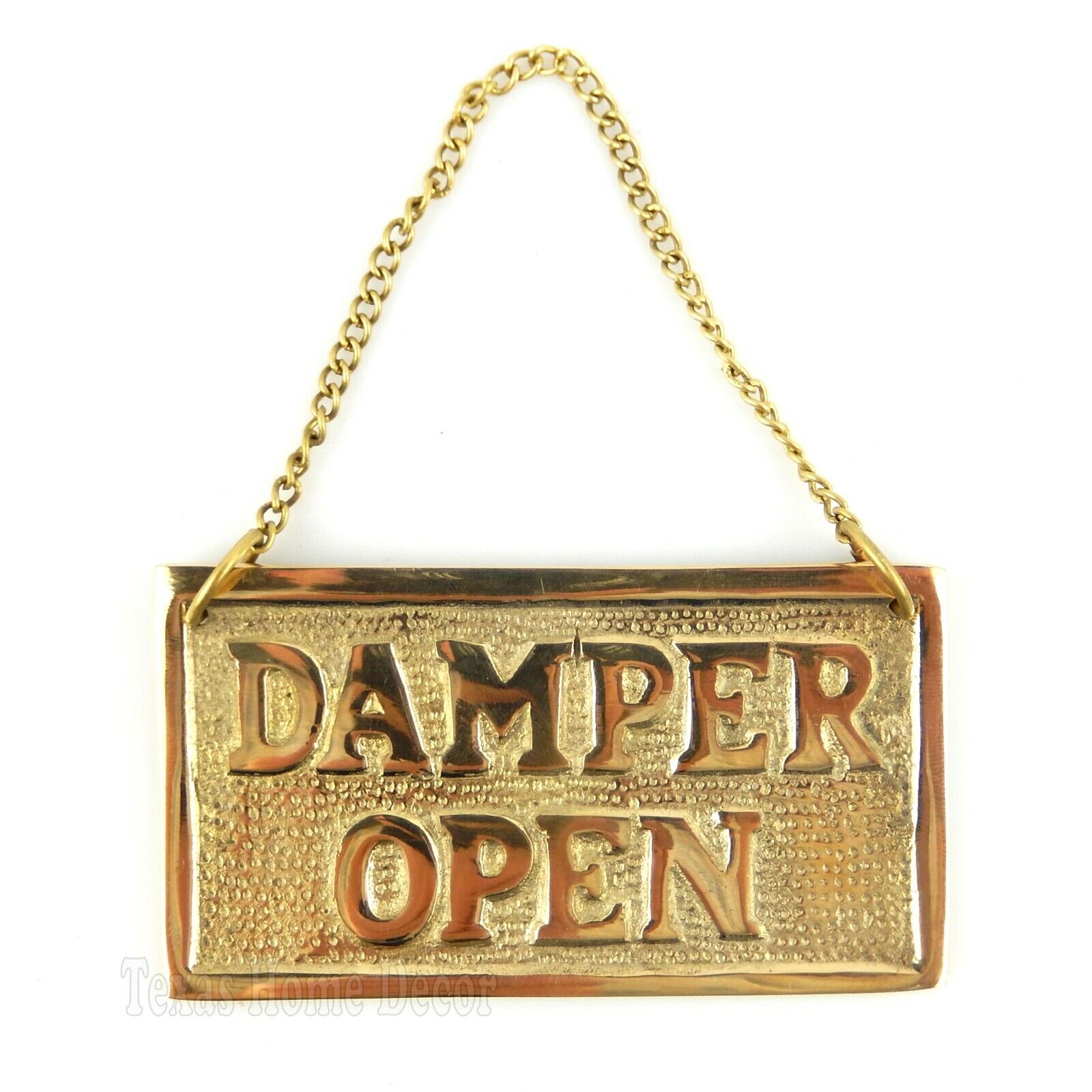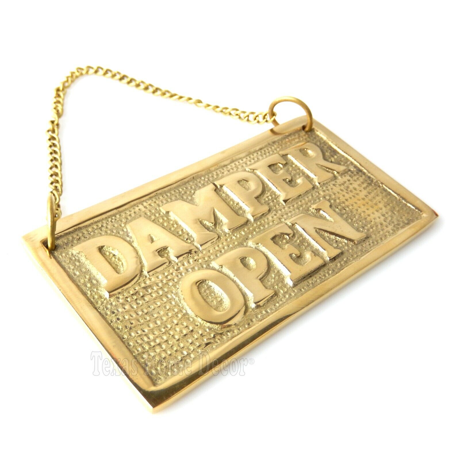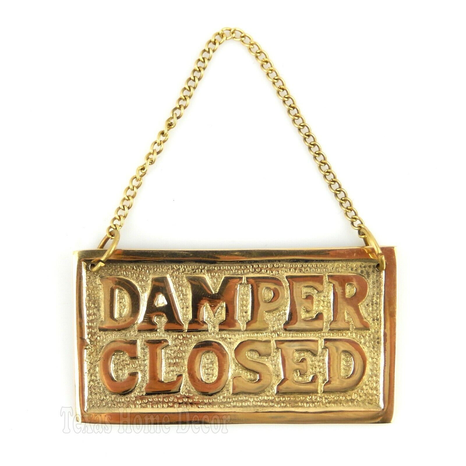 Damper Open Closed Fireplace Sign Solid Brass Hanging Double Sided Vintage Style