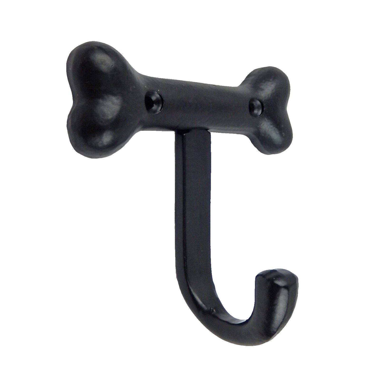 Dog Bone Leash Holder Hook Wall Mounted Cast Iron Coat Towel Key Hanger Black