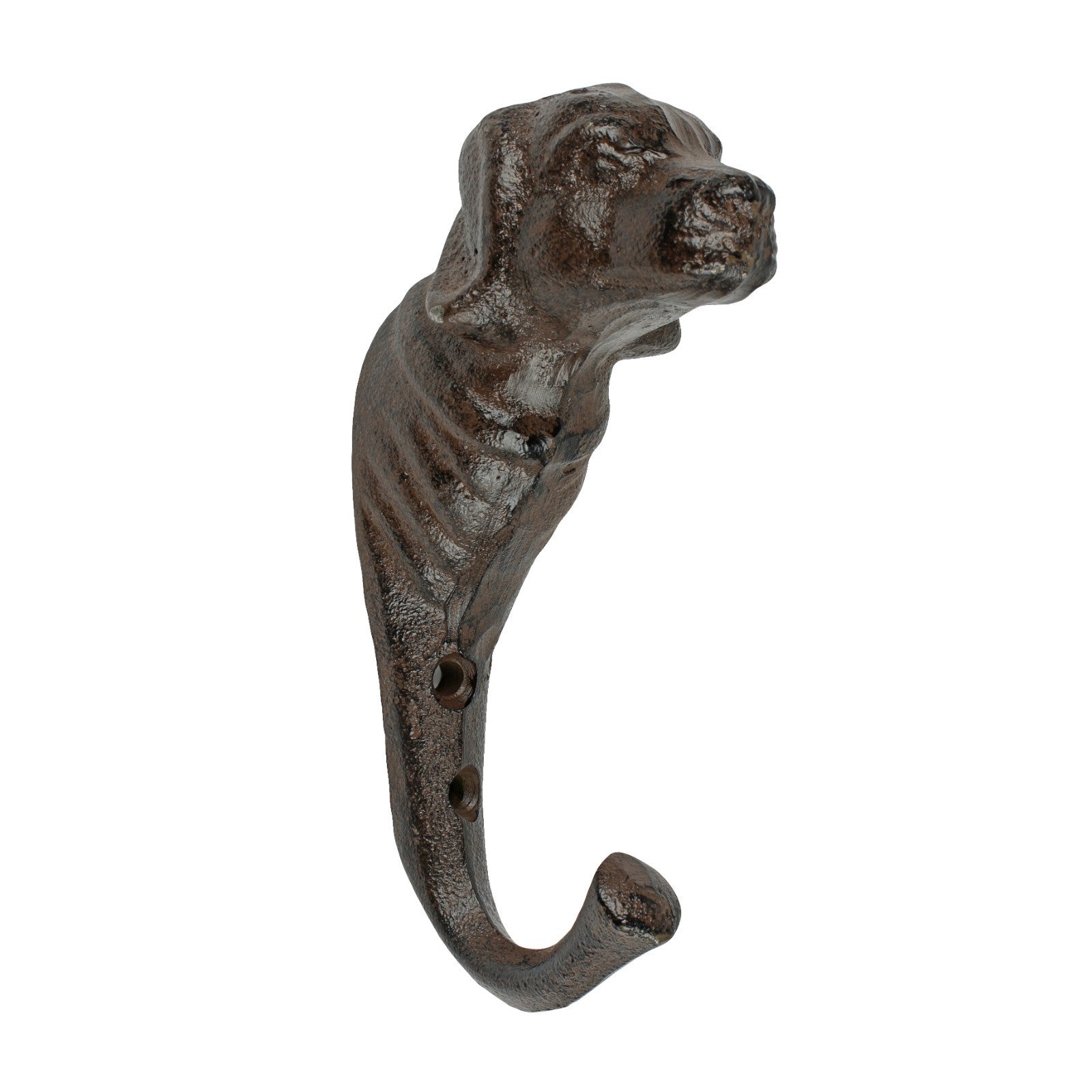 Dog Head Wall Hook Cast Iron Key Towel Coat Leash Hanger Antique Rustic Brown