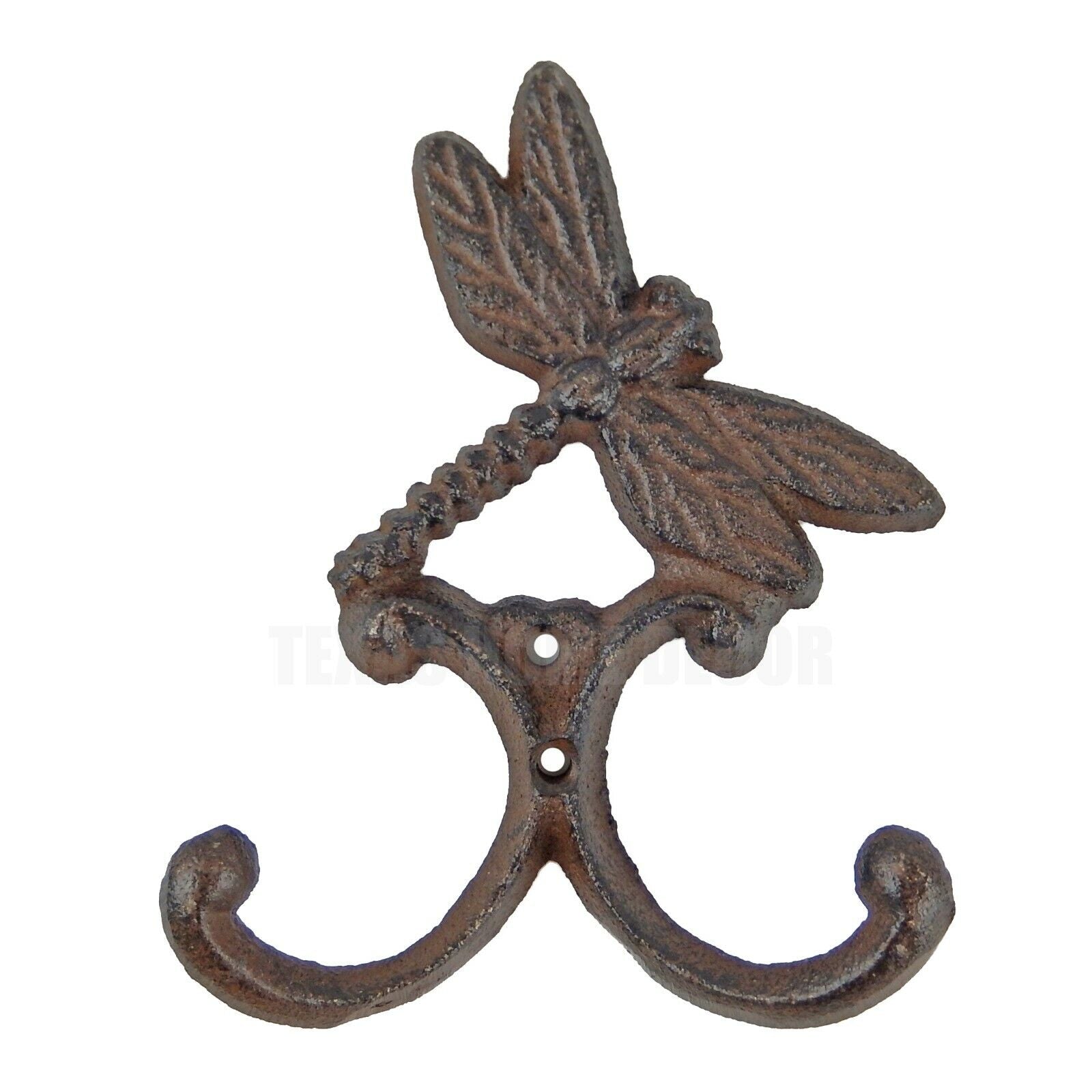 Dragonfly Double Wall Hook Cast Iron Key Towel Coat Hanger Rustic Antique Style