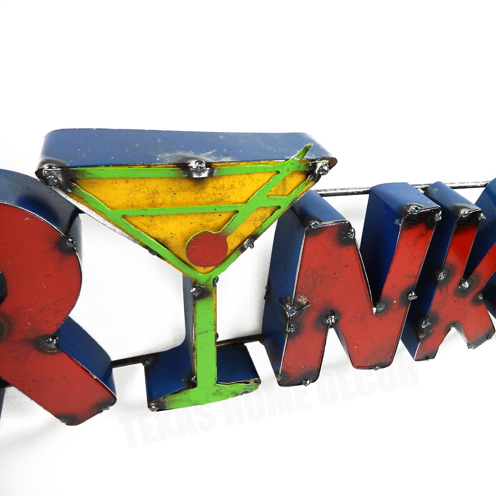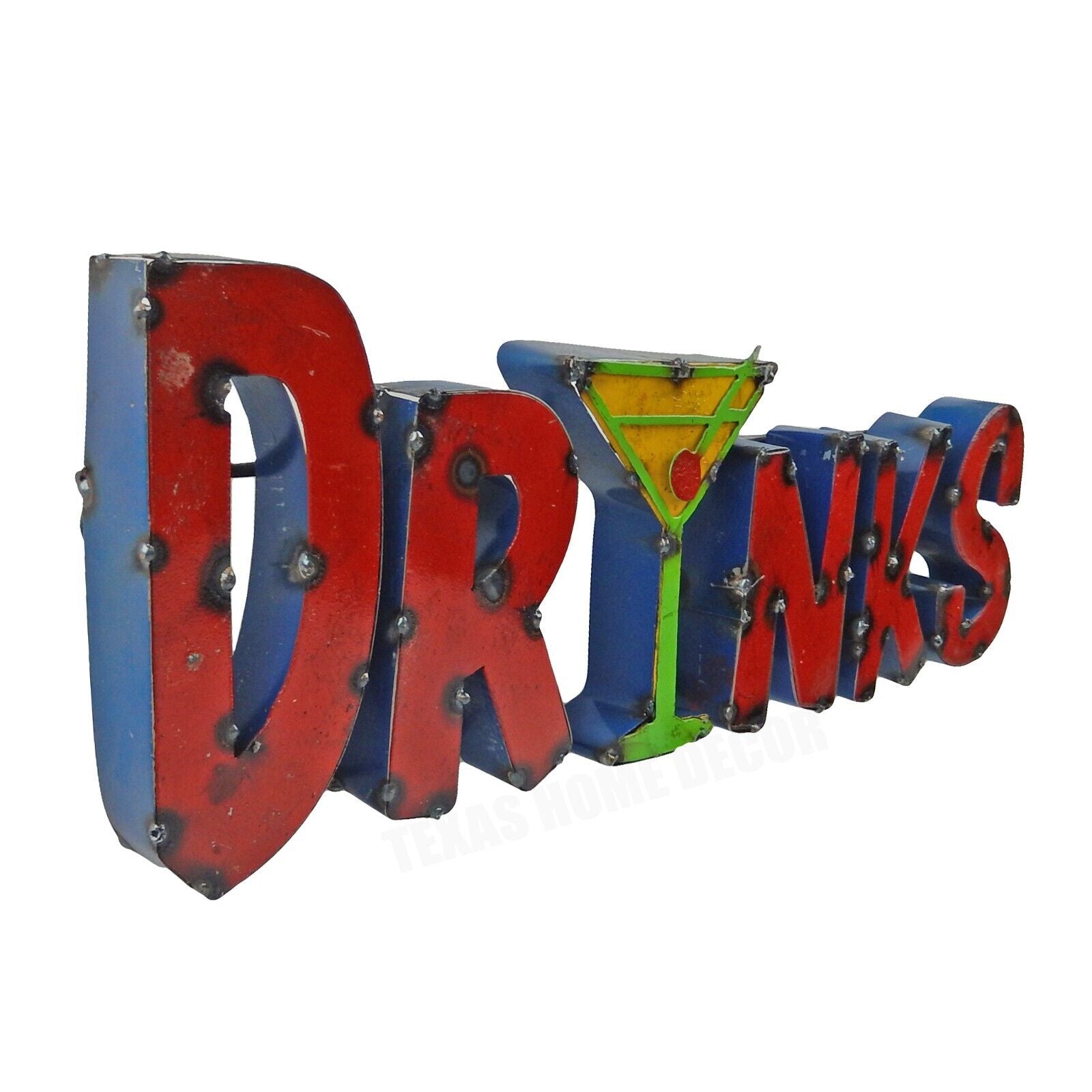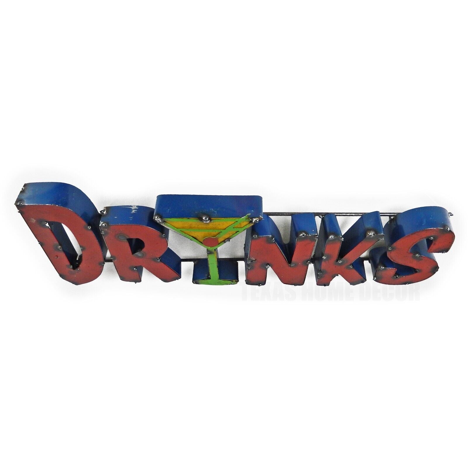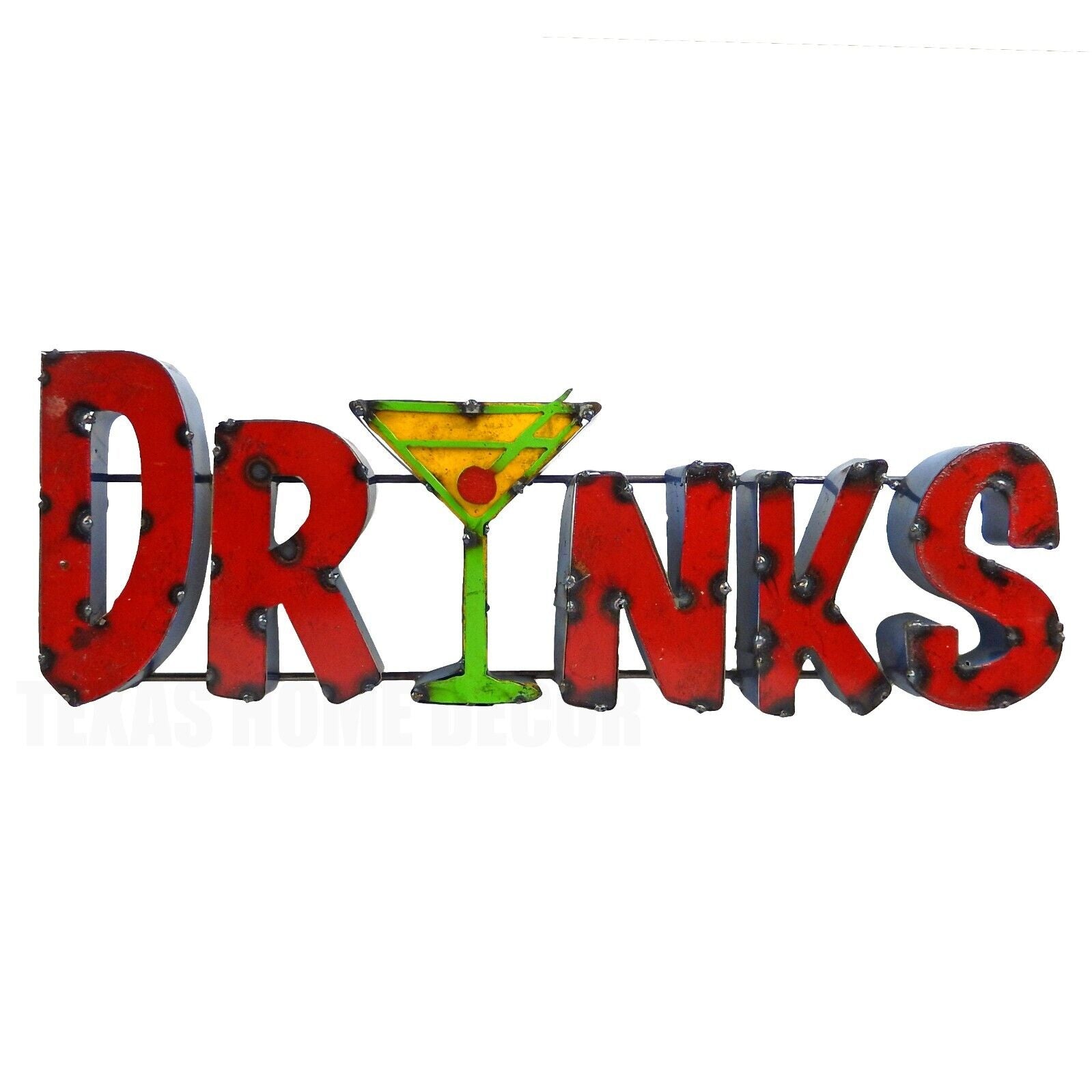 DRINKS Martini Glass Recycled Metal Sign Colorful Bar Cantina Wall Decor