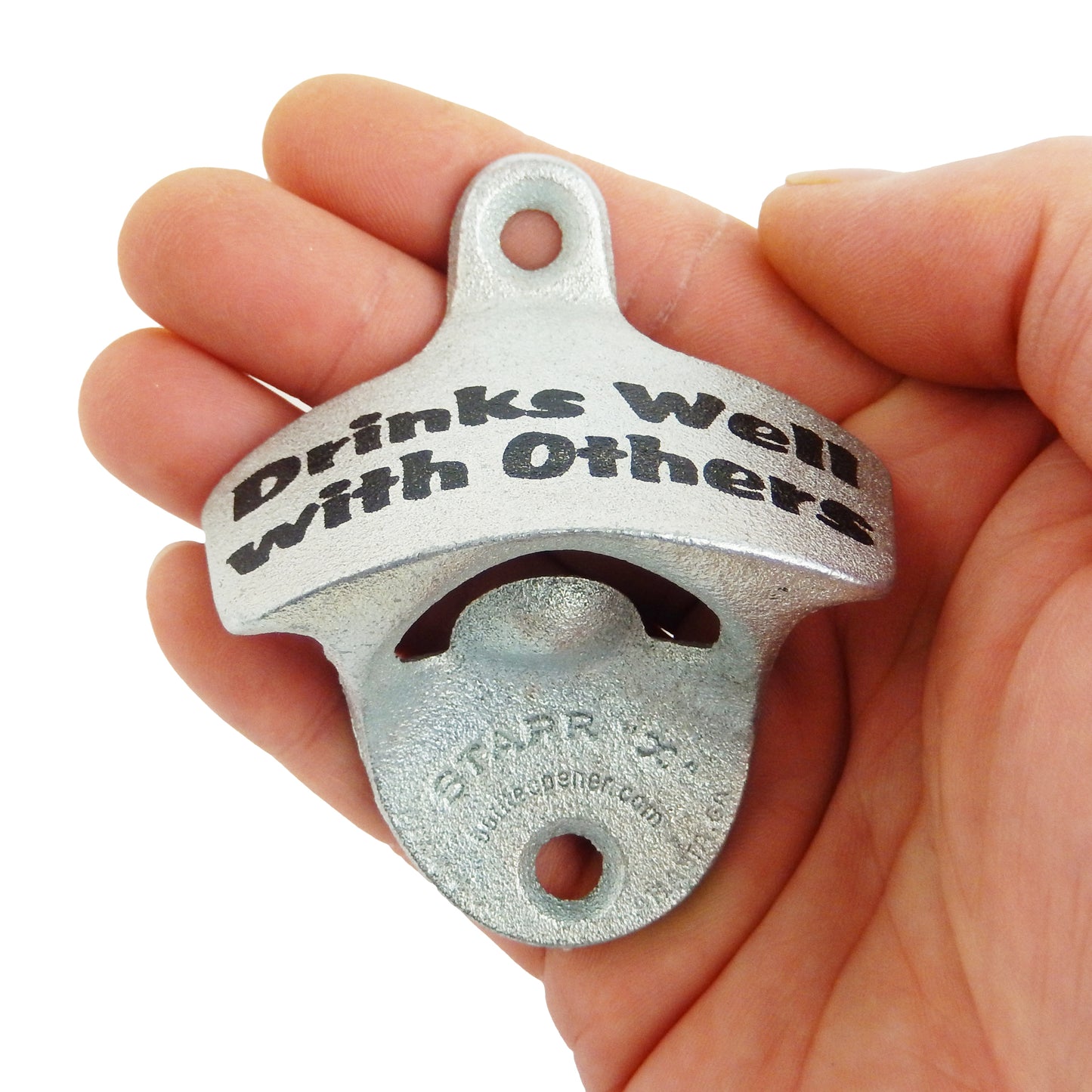 Starr X Drinks Well With Others Cast Iron Beer Bottle Opener Wall Mounted Zinc Plated
