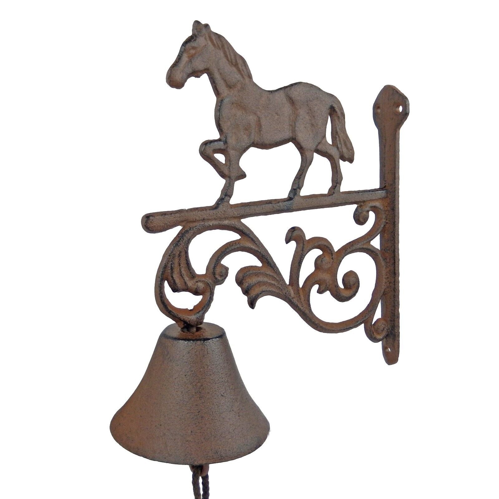 Elegant Scrolls Horse Cast Iron Farm Dinner Bell Wall or Post Mounted Rustic