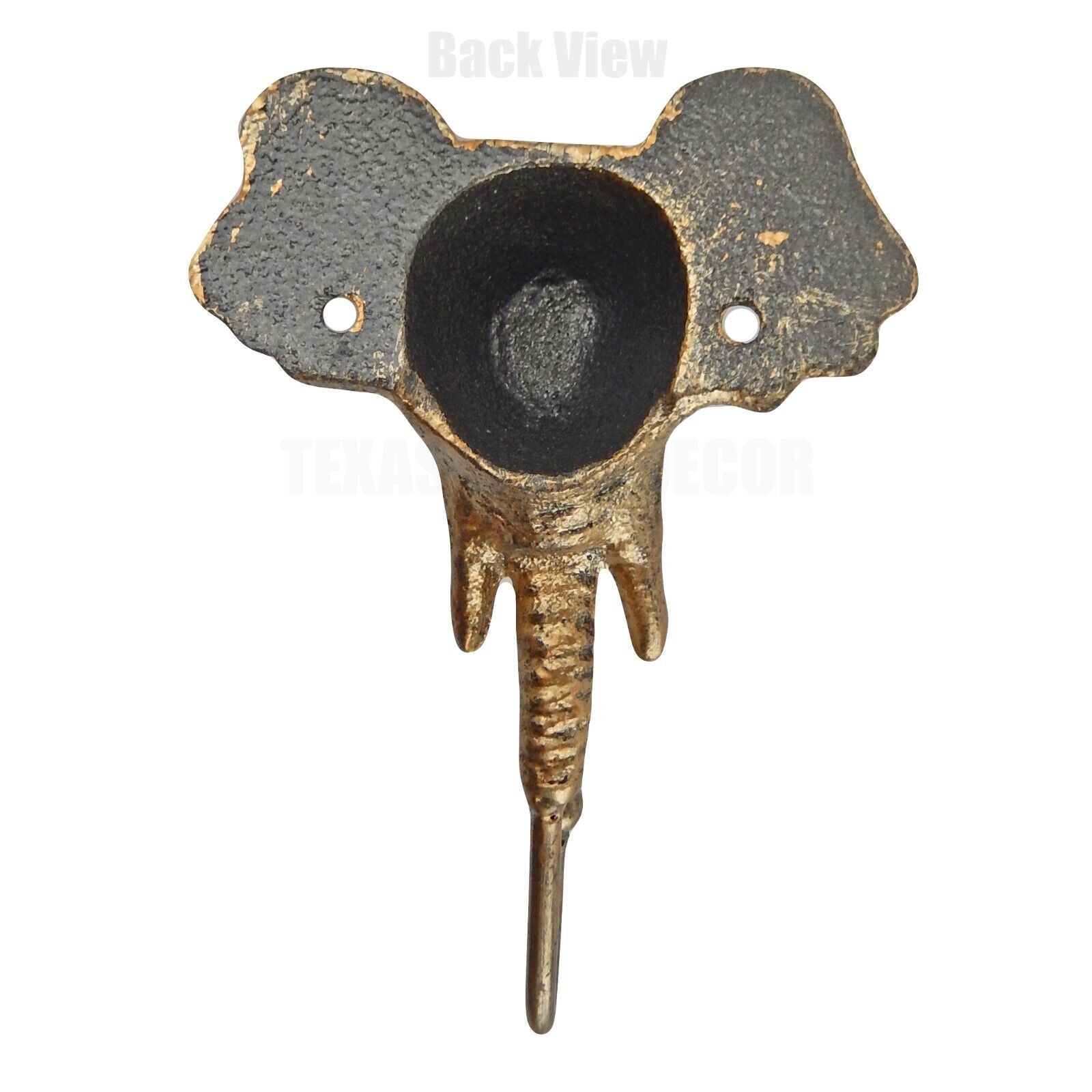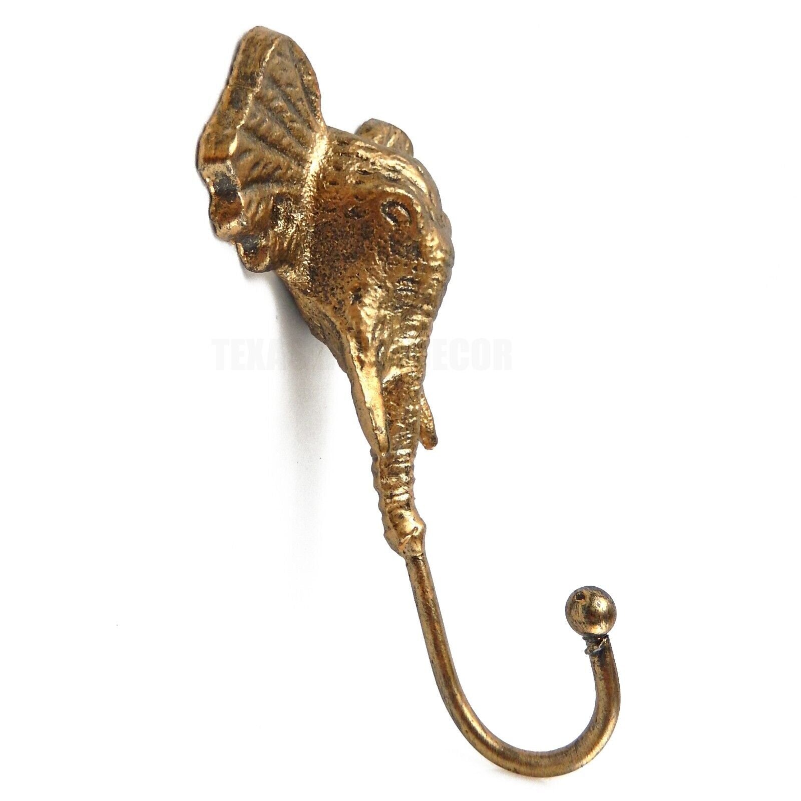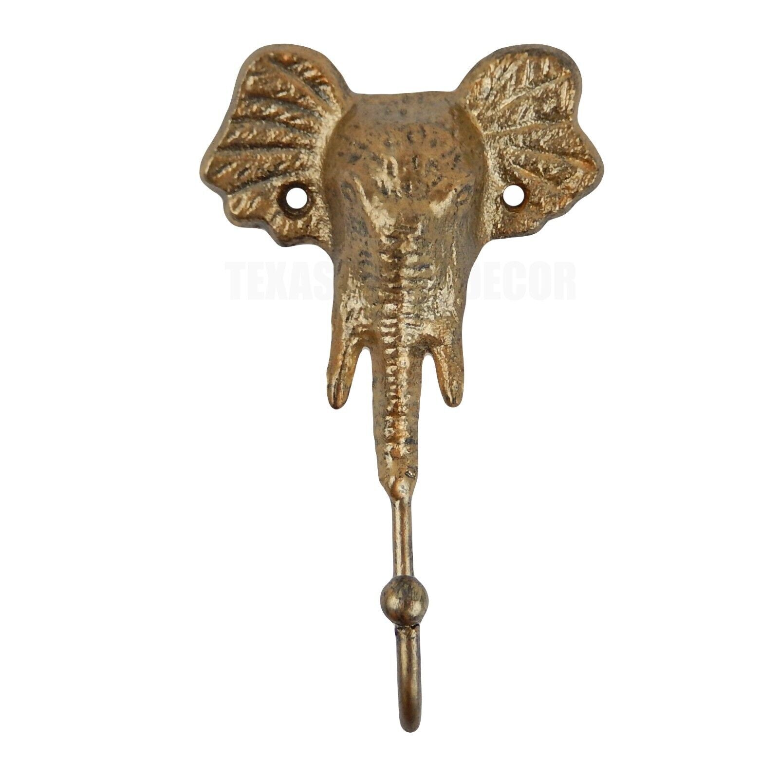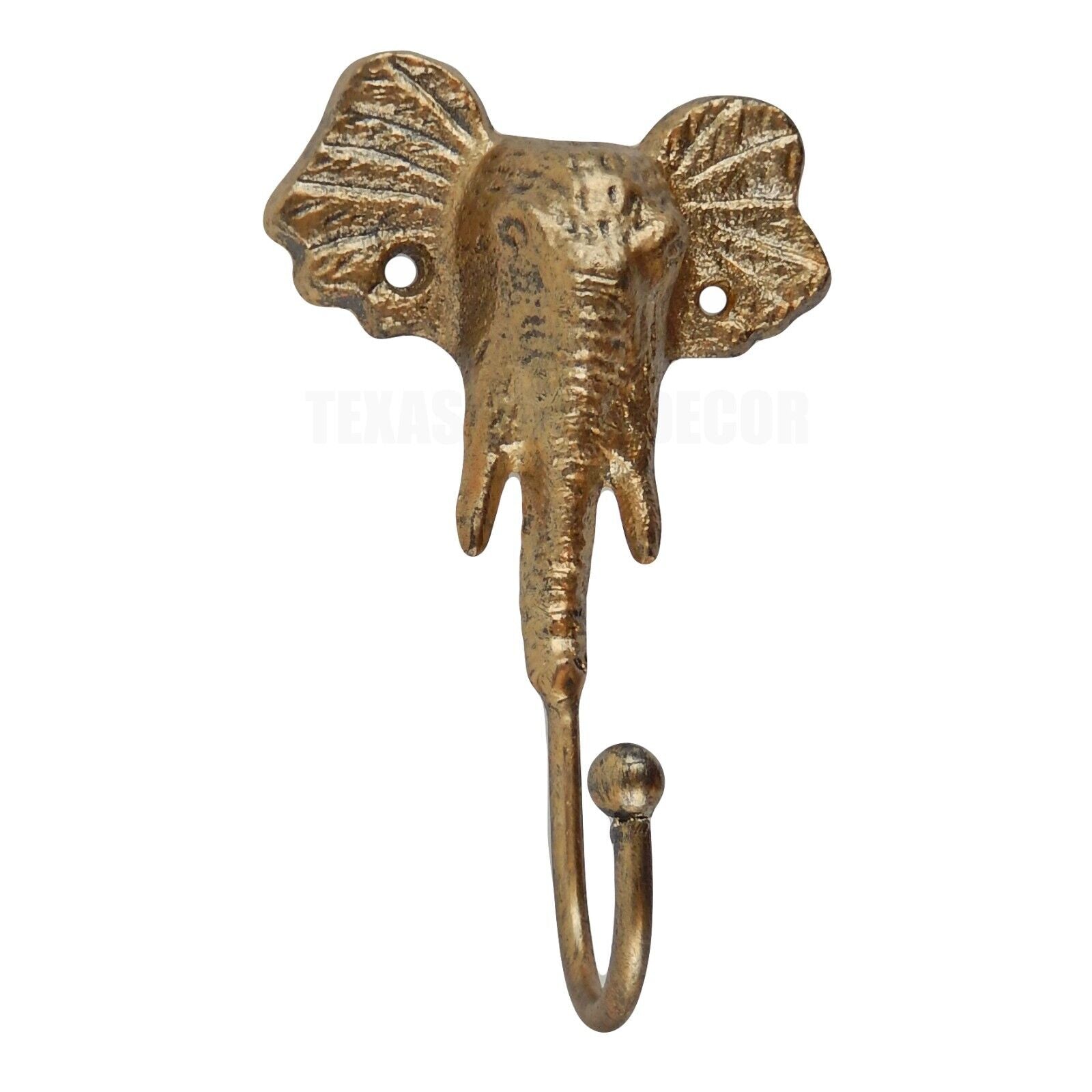 Elephant Wall Hook Cast Iron Metal Key Towel Coat Hanger Gold Finish 6 inch Tall