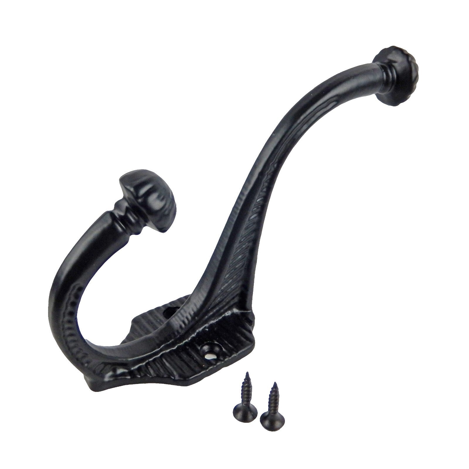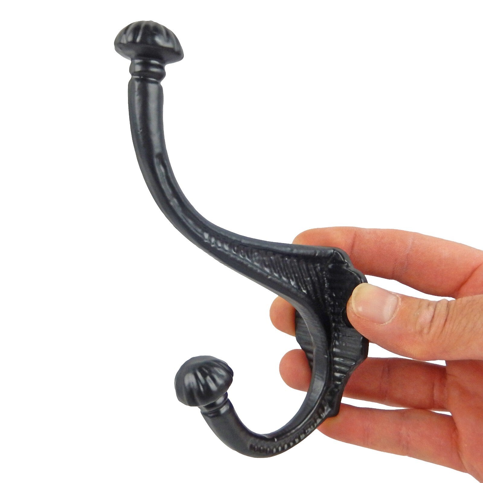 Fancy Black Cast Iron Double Wall Hook Behind Door Key Towel Coat Hanger 6 inch