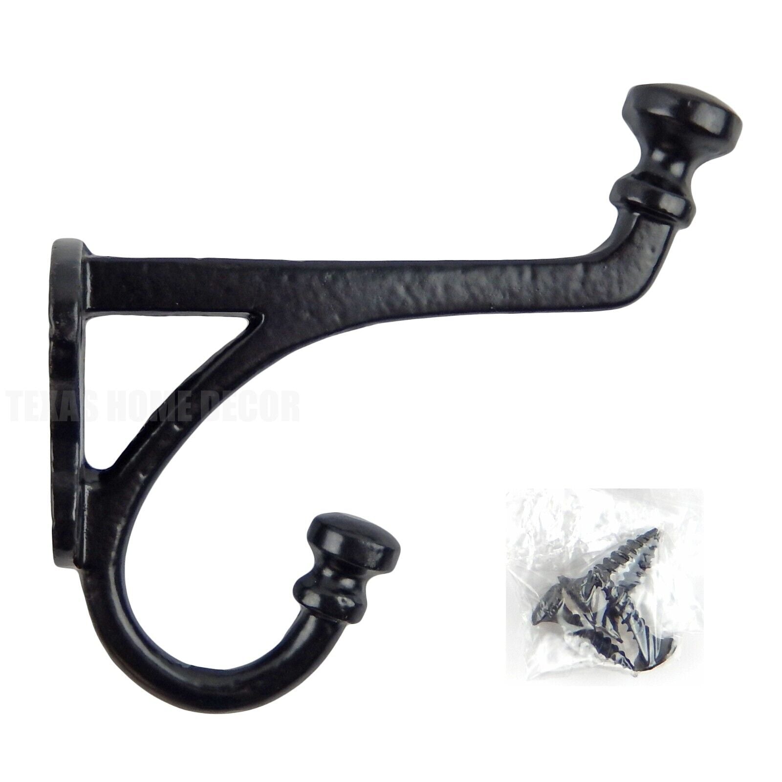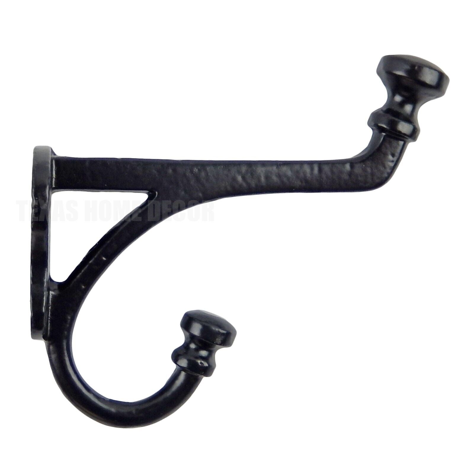 Farmhouse Double Wall Hook Cast Iron Key Coat Towel Hanger Black Powder Coated