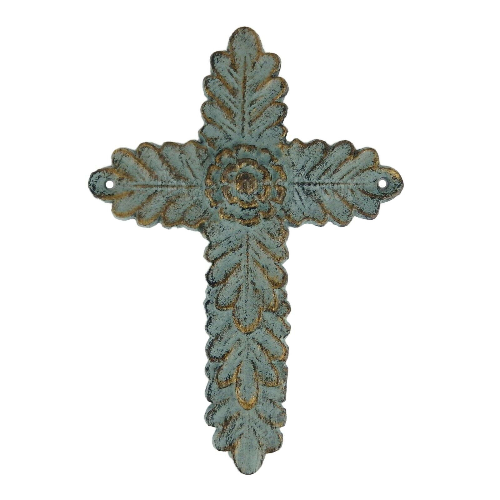 Flower Wall Cross Leaves Cast Iron Gold Green Patina Wall Mounted 8"