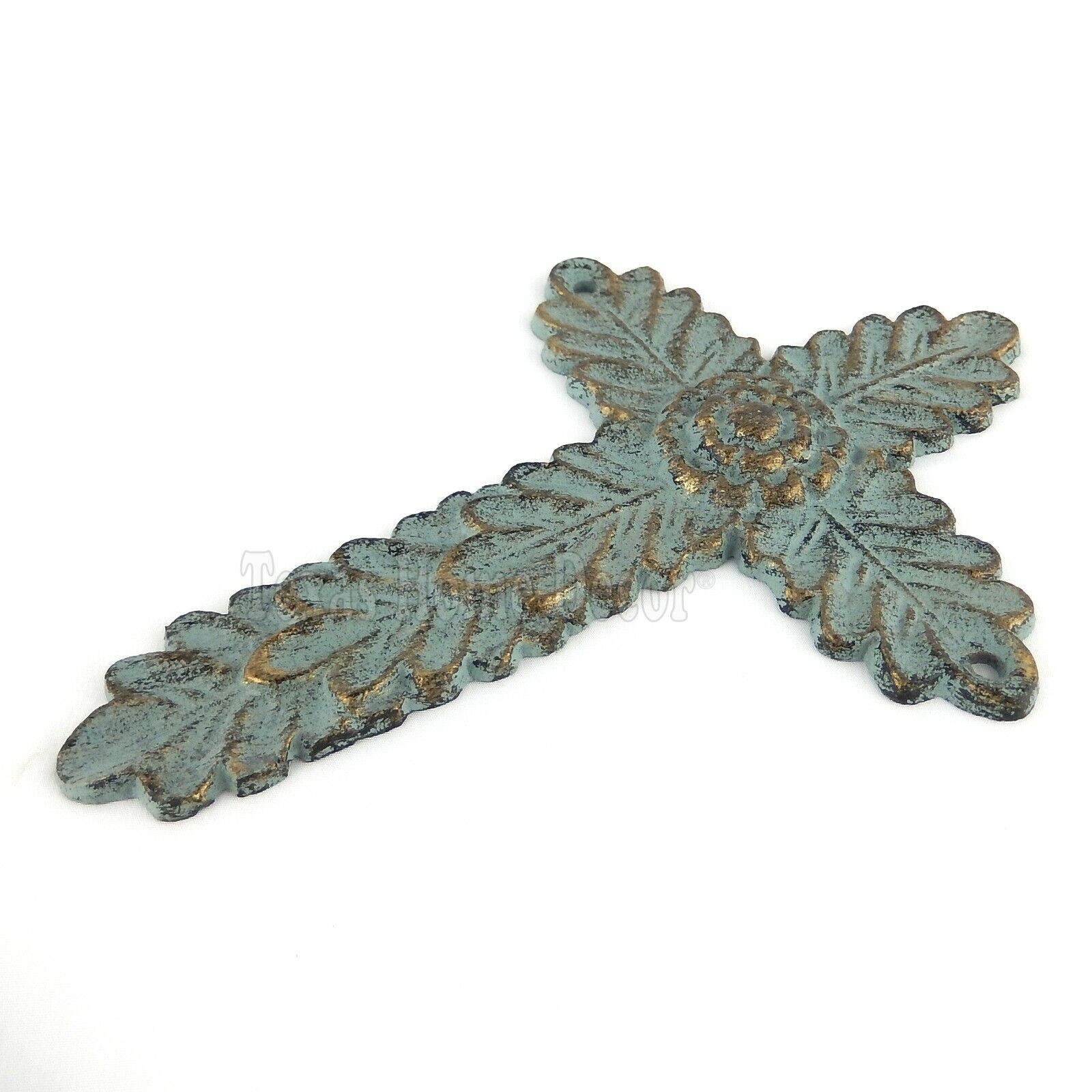 Flower Wall Cross Leaves Cast Iron Gold Green Rustic Verdigris Patina 8" #0244