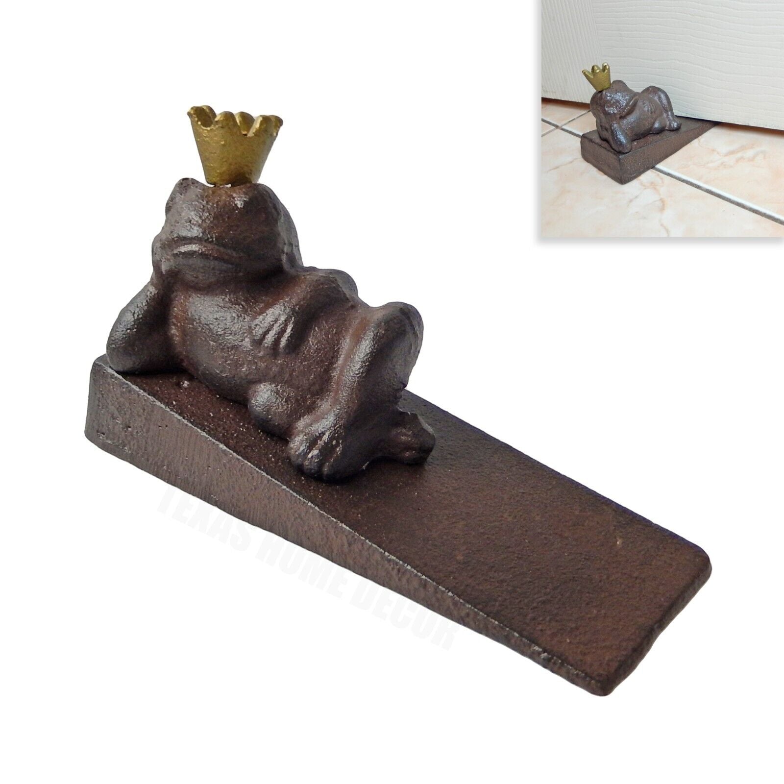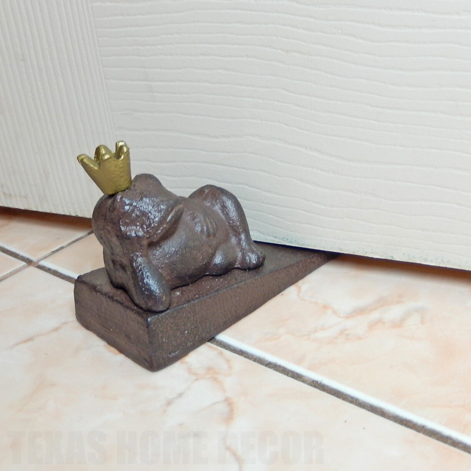 Add a touch of whimsy to your home décor with this Frog Prince With Golden Crown Cast Iron Doorstop Wedge. The rustic brown finish and rustic/primitive style make it a unique decorative accessory for any room. Made of durable cast iron, this door stay has a slide-on installation and a freestanding design.
