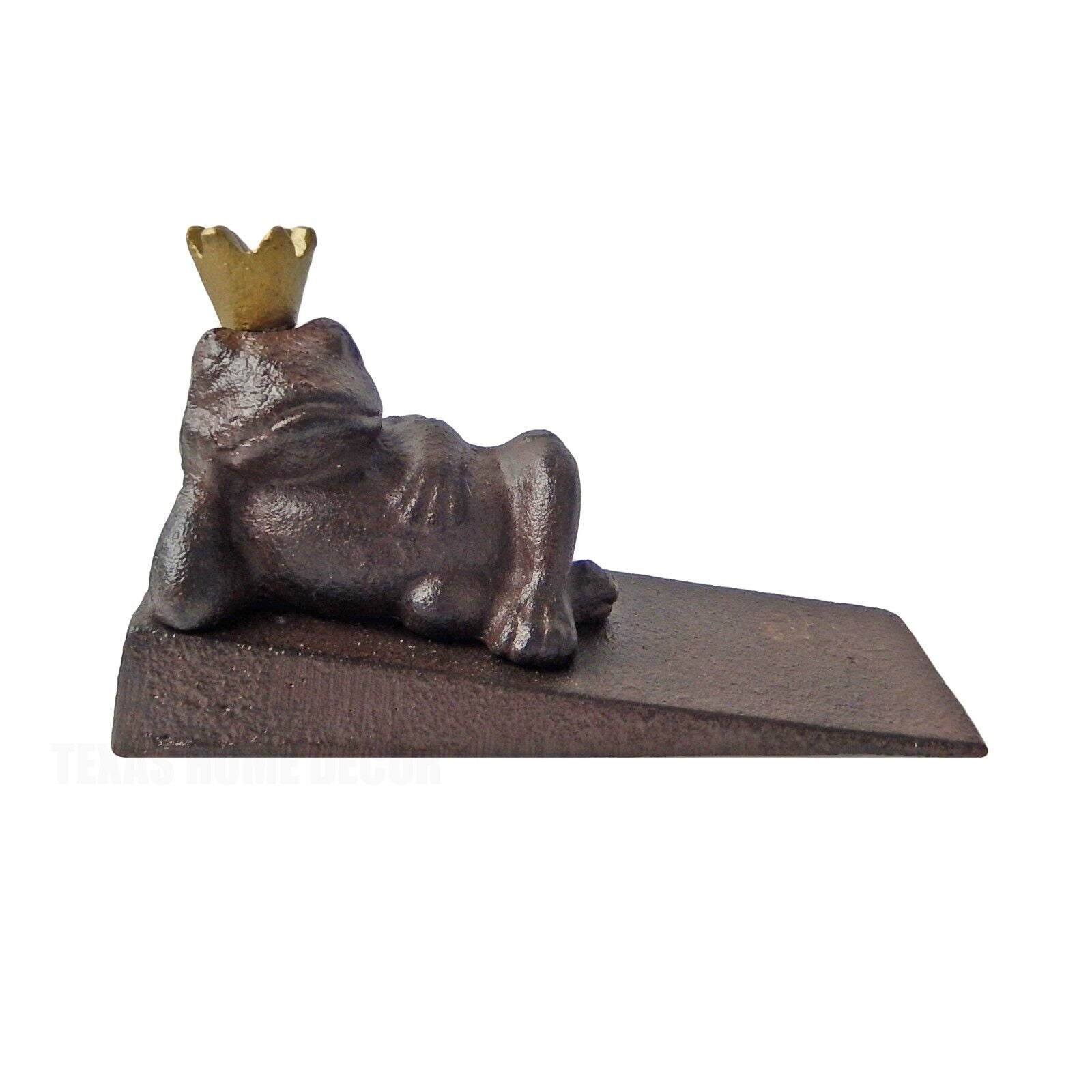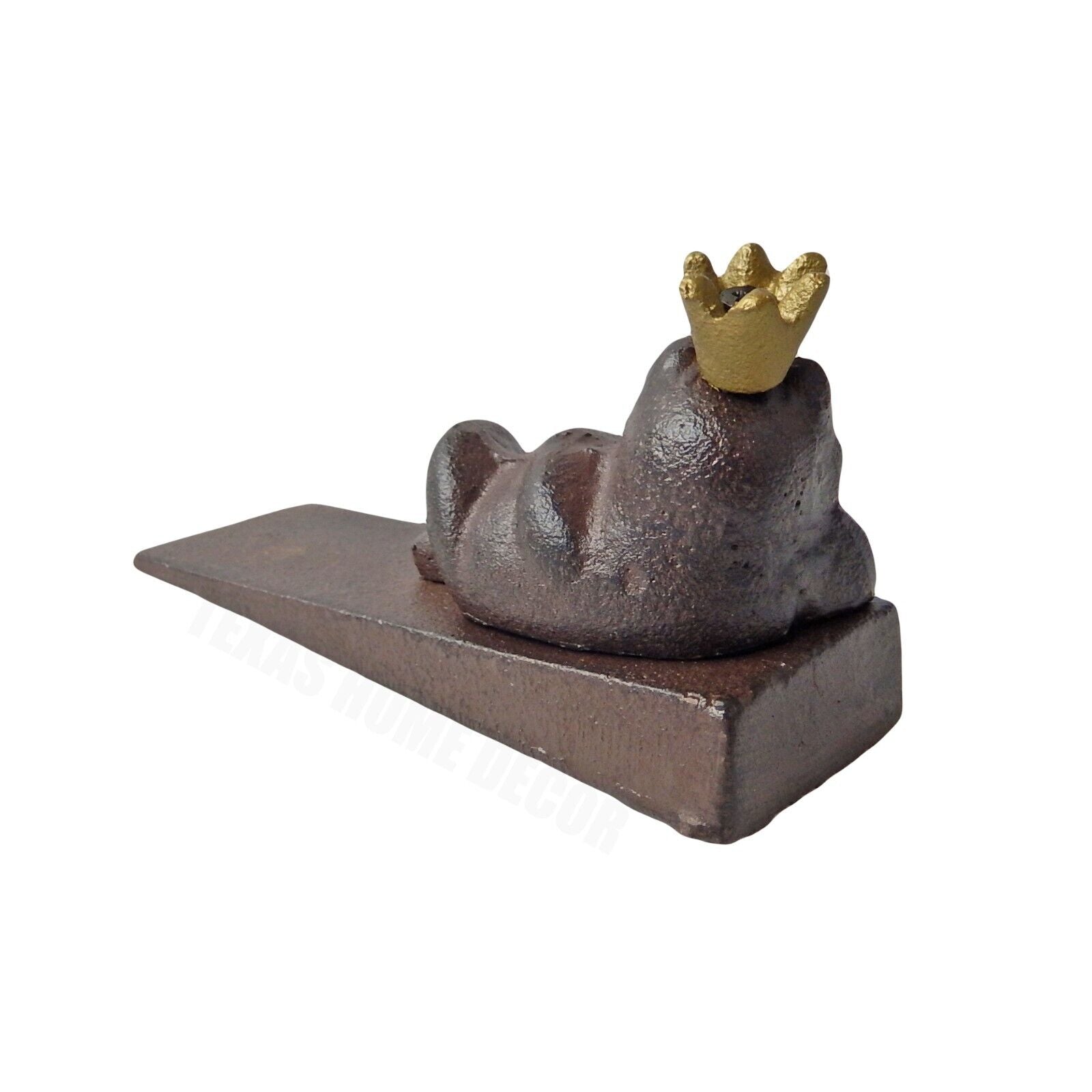 Frog Prince With Golden Crown Cast Iron Doorstop Wedge Rustic Brown