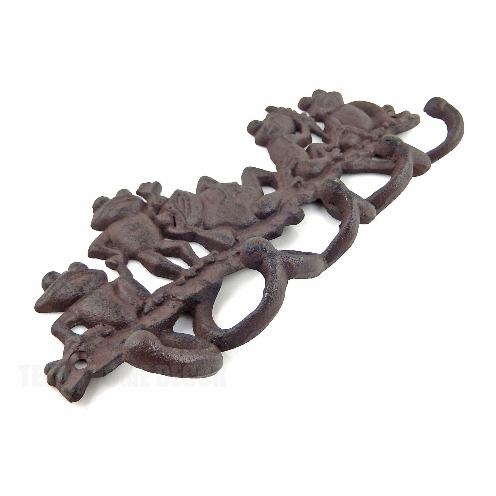 Frog Wall Hook Cast Iron Key Coat Rack Towel Hanger Antique Style Rustic Brown