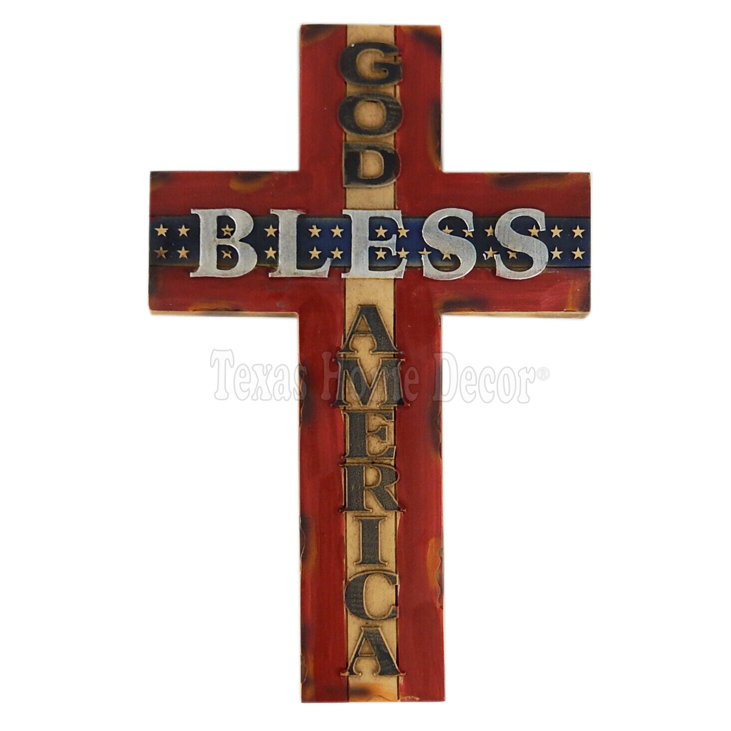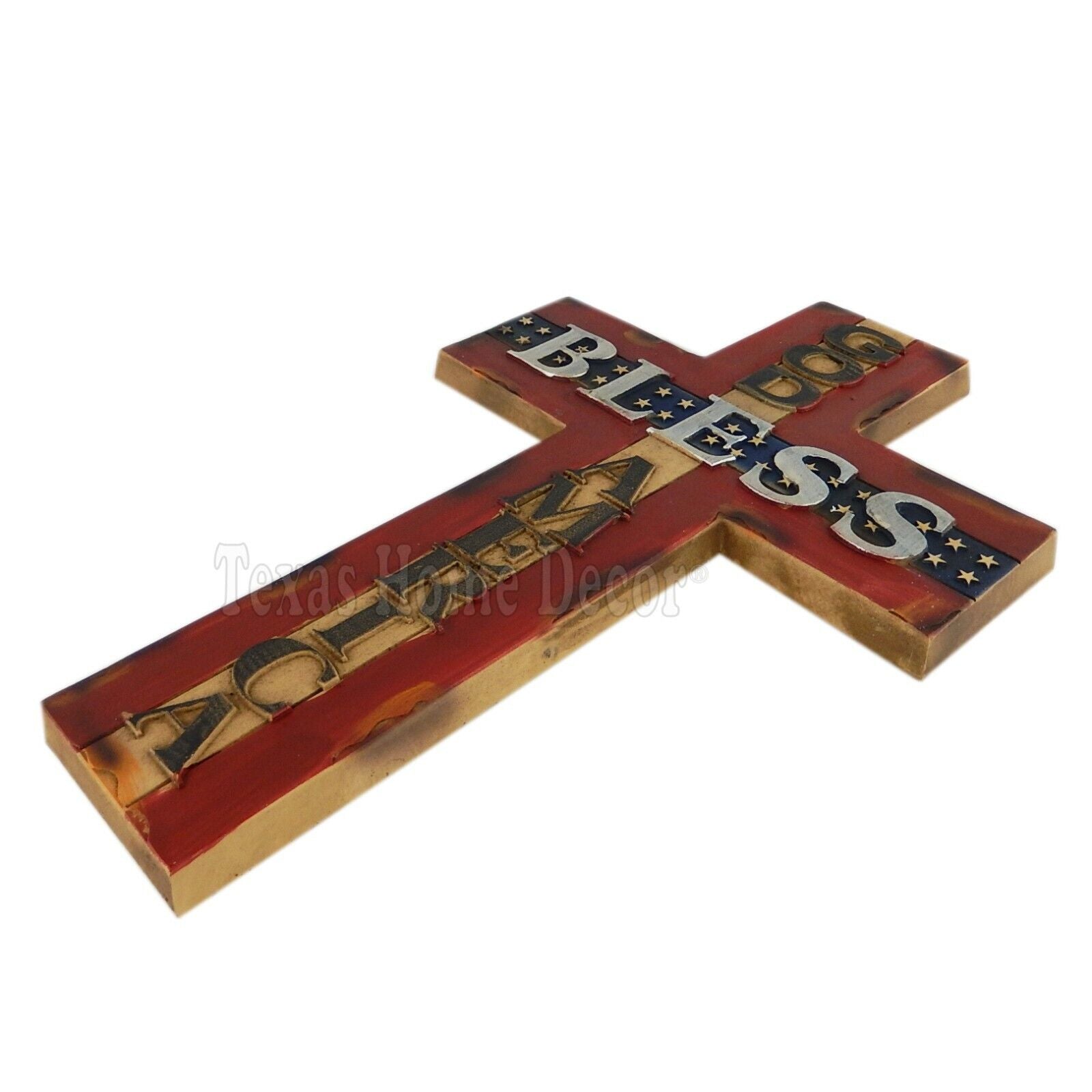 God Bless America Wall Cross Faux Wood Look Wall Mounted Red White Blue 14 inch