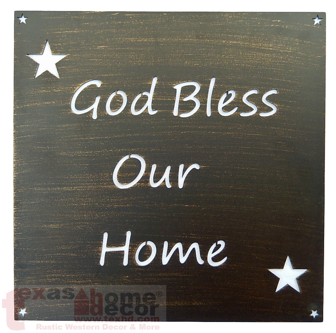 God Bless Our Home Wall Decor Sign Steel Plate Metal Cut-Out Stars Brushed Copper 12 inch