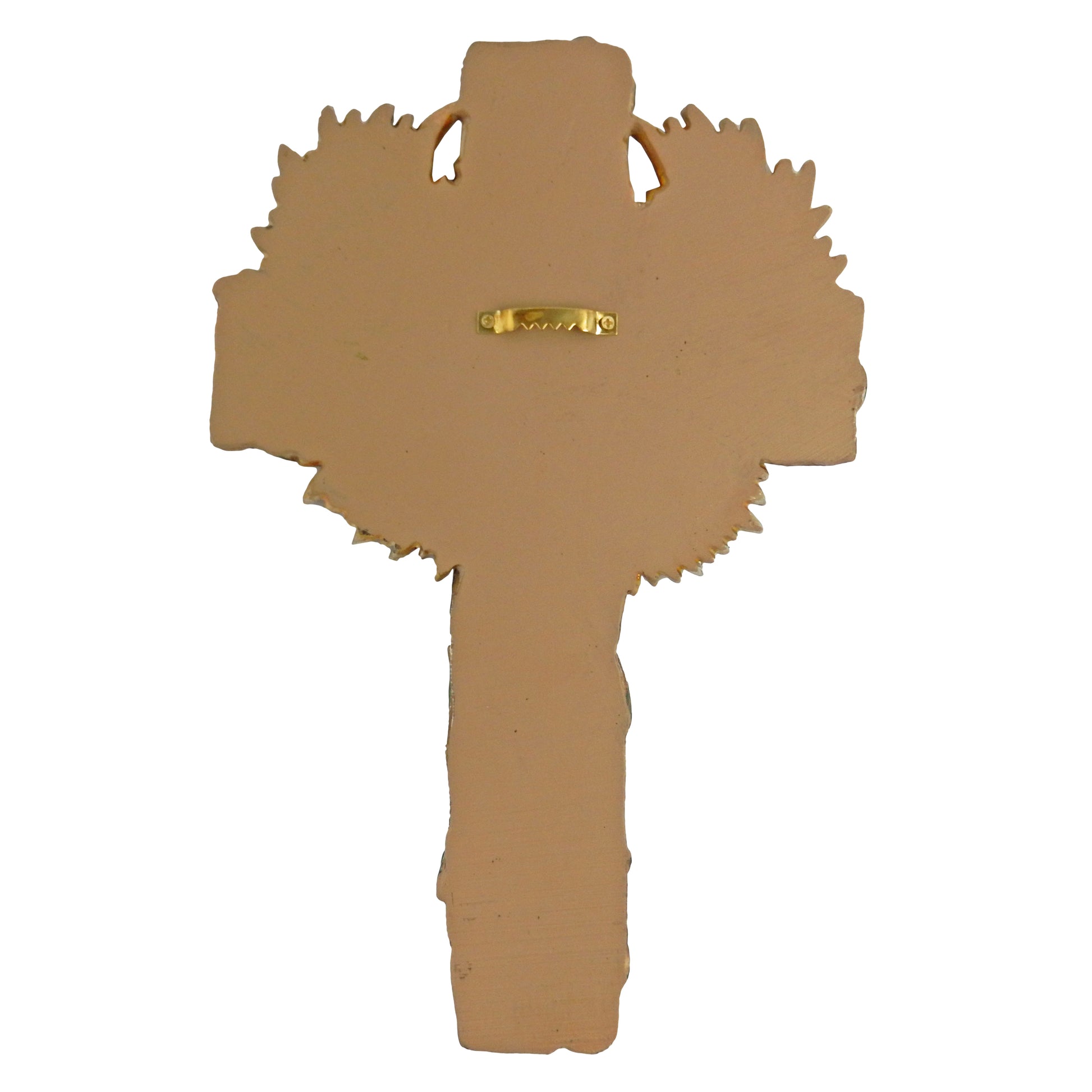 This beautiful wall cross features a unique design of angel wings with a beige, gold, and green color scheme. Measuring 13 inches in length and 8 1/2 inches in width, it is made of polyresin material and hand painted with intricate details. The cross is perfect for those who appreciate a handmade touch and is ideal for display in any room of the house. The inspirational text reads "Love, Patient, Kind, Hopeful" and is perfect for those who need a little reminder to hold onto these virtues. This item is a great addition to any collection and is sure to be a conversation starter. The back has a sawtooth metal hanger for easy mounting on any wall.