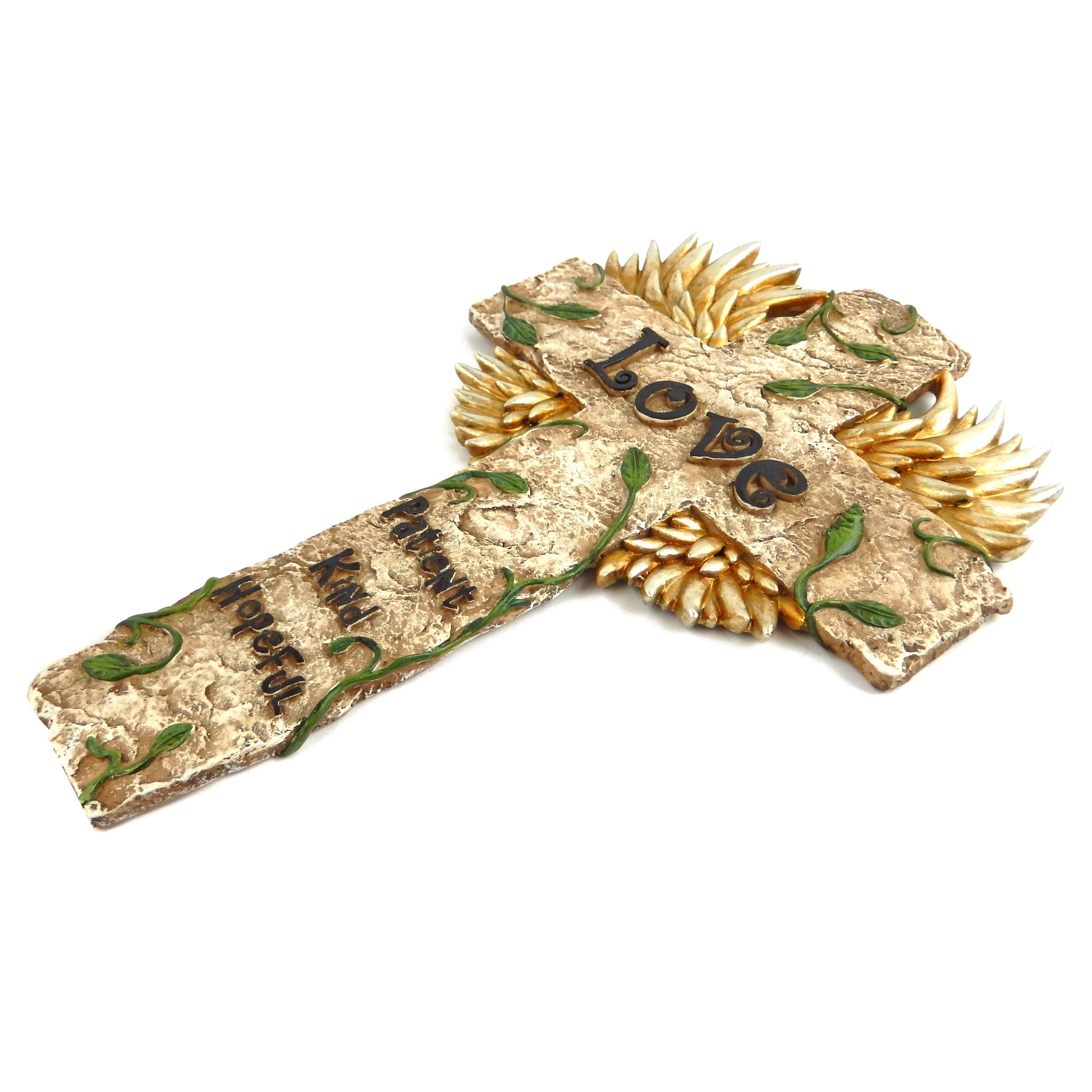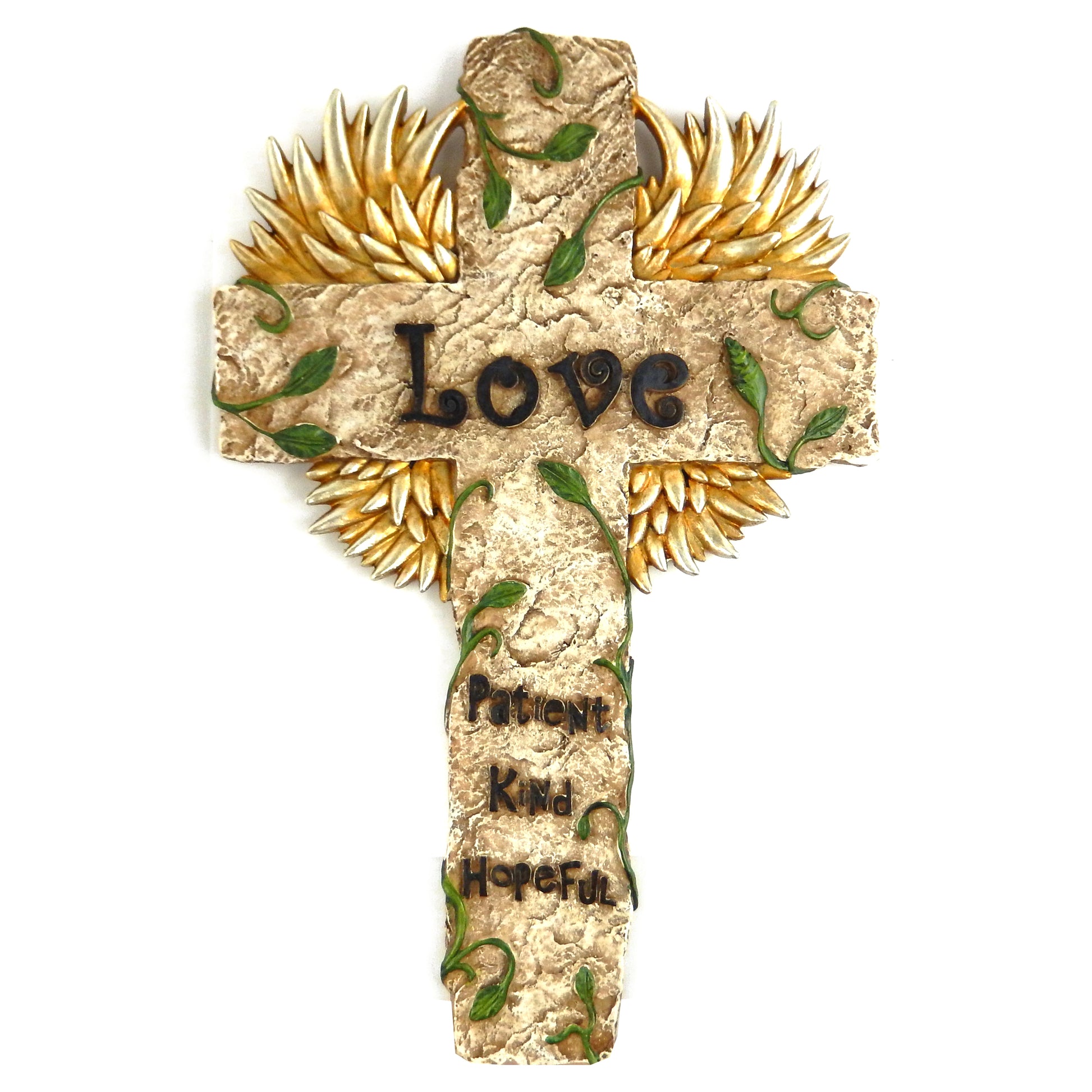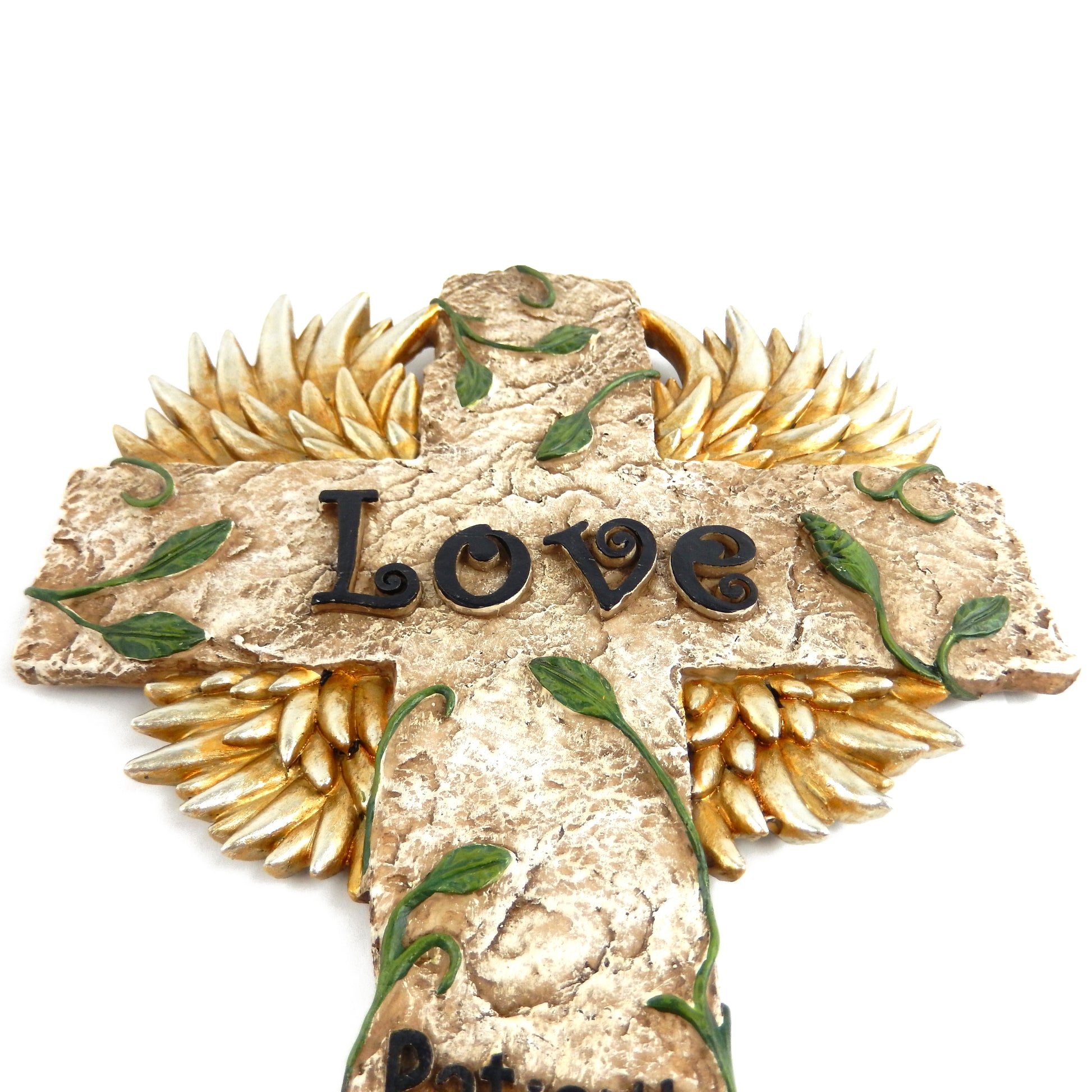 Golden Love Angel Wings Wall Cross Stone Look Leaf "Patient Kind Hopeful" 13 in #C60300