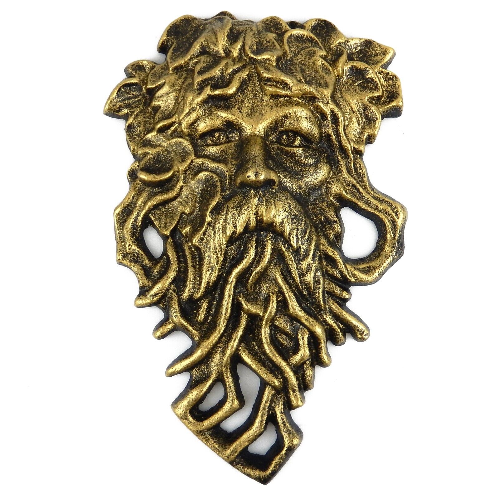 Green Man Celtic Garden Face Nature Wall Decor Rustic Gold Cast Iron 11.25 in #X-2294