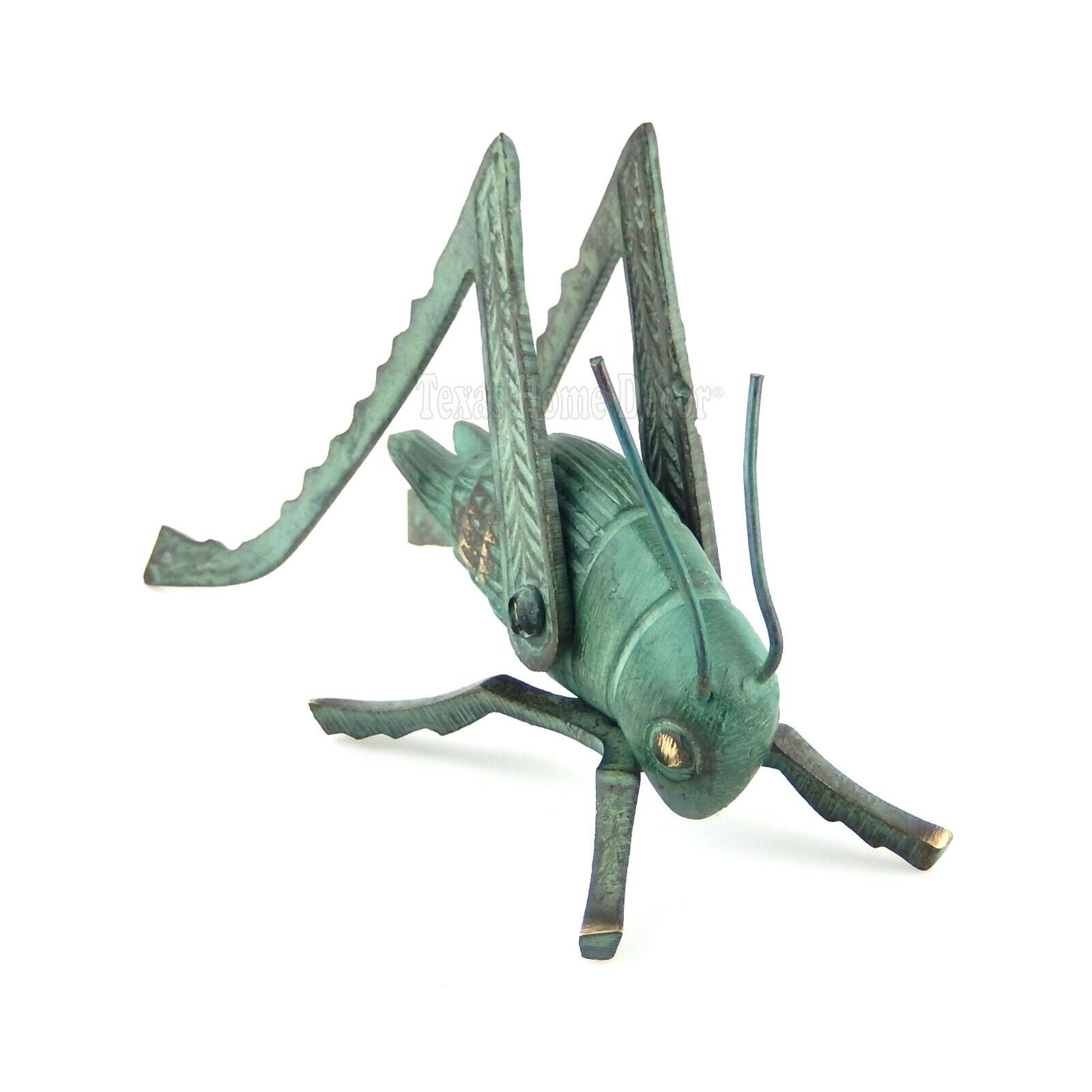 Hearth Cricket Good Luck Figurine Fireplace Mantel Solid Brass Green Verdigris