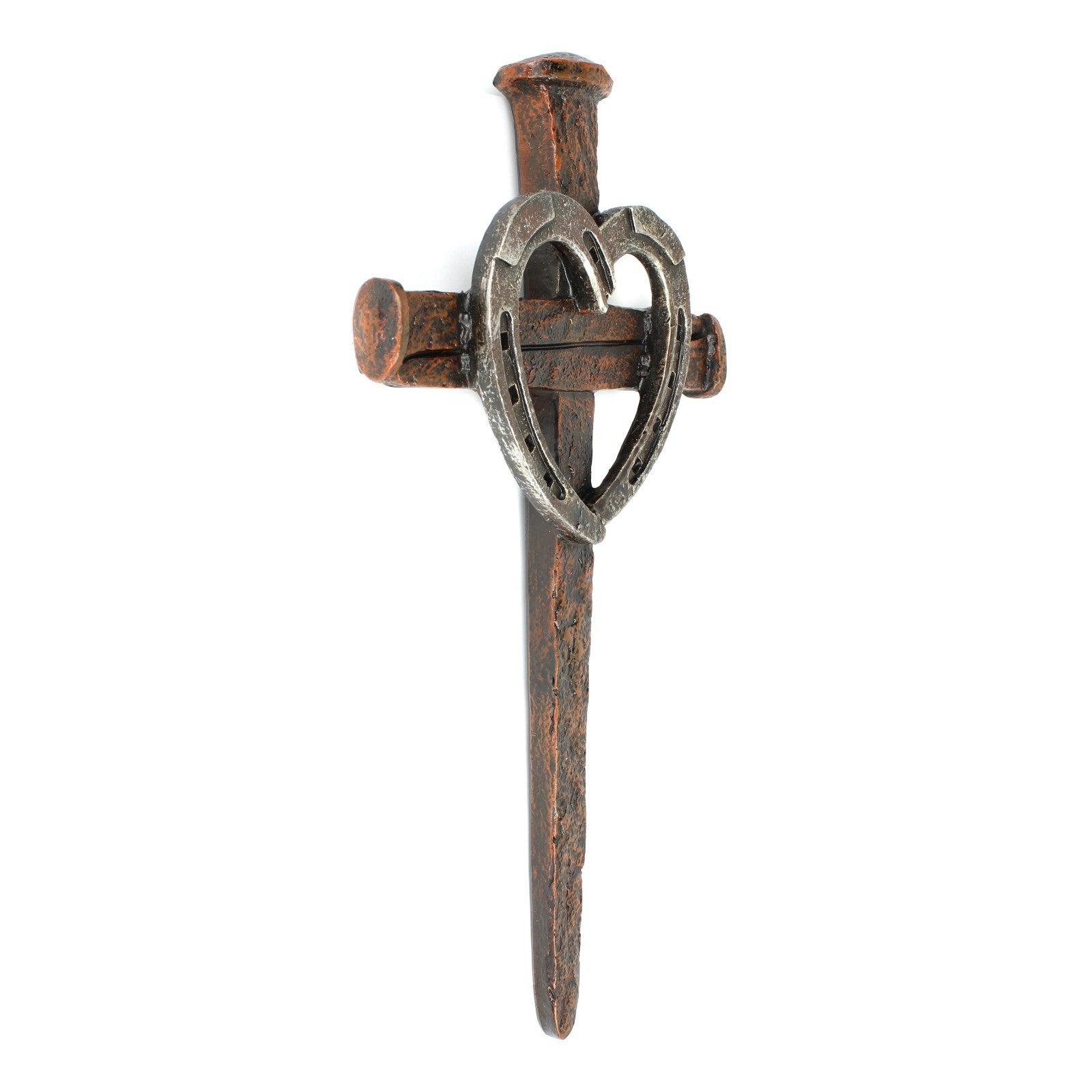 Horseshoe Heart Nails Wall Cross Rustic Western Religious Decor 12 1/4 inch