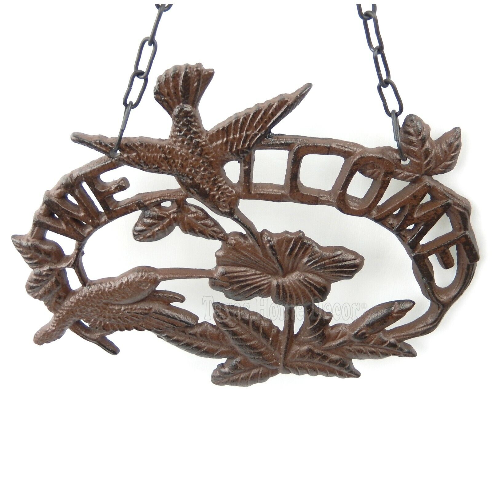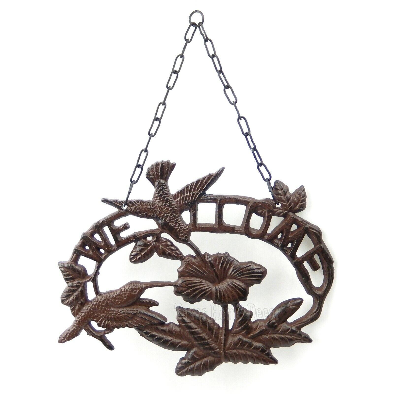 Hummingbirds Flowers Welcome Sign Rustic Cast Iron Plaque Porch Garden Decor