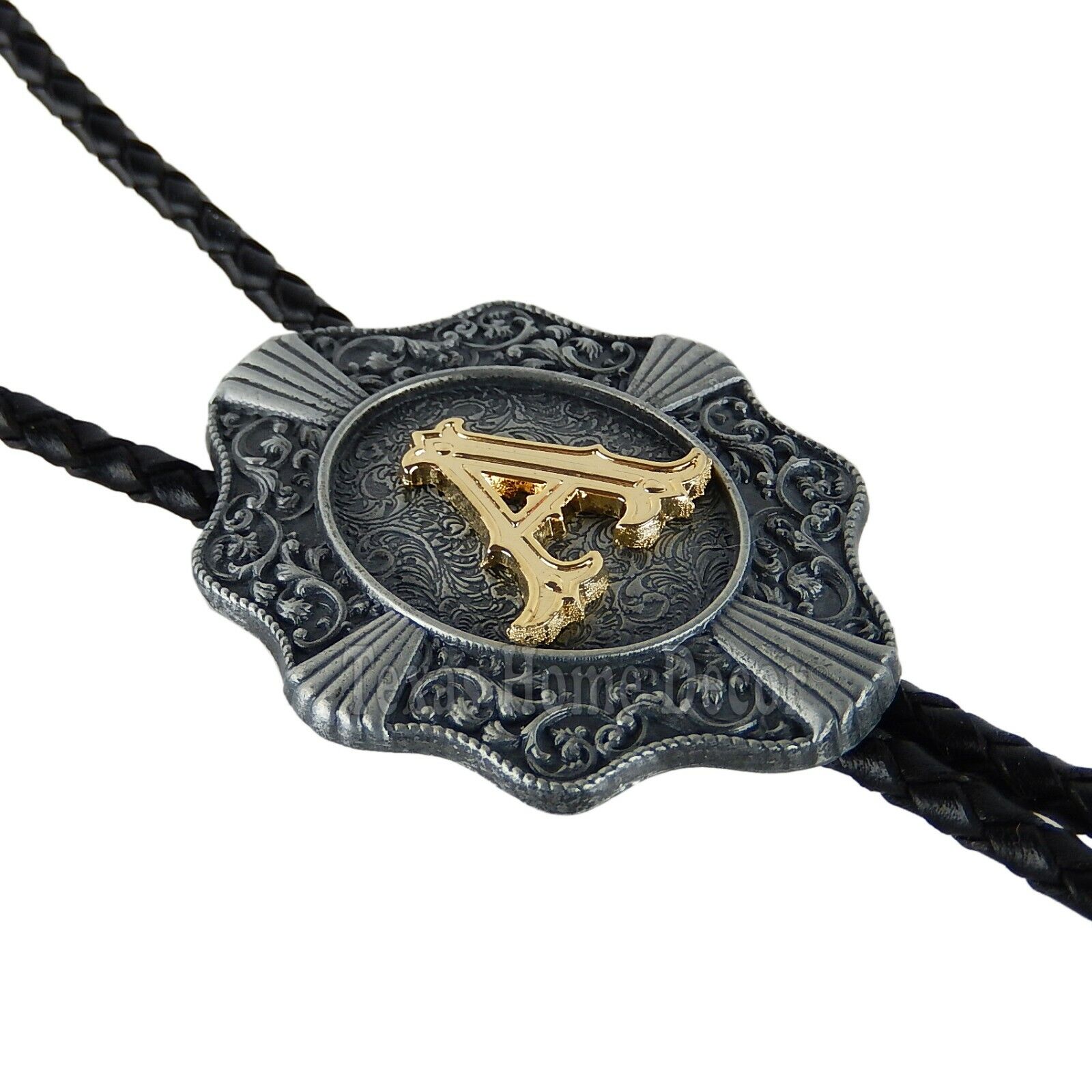 Initial Letter "A" Bolo Tie Western 38" Genuine Leather Cord Detailed Tips