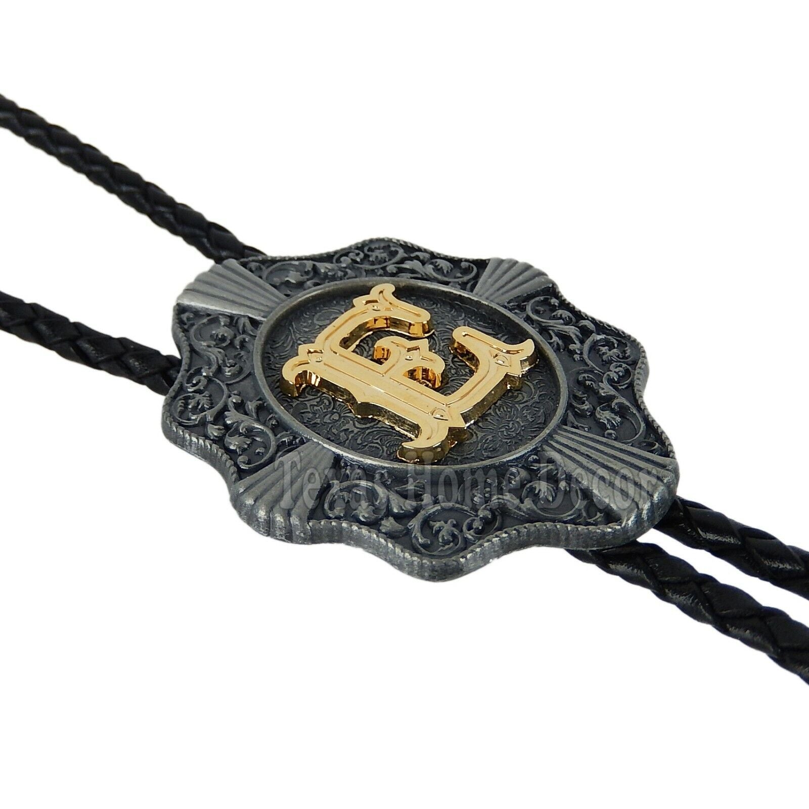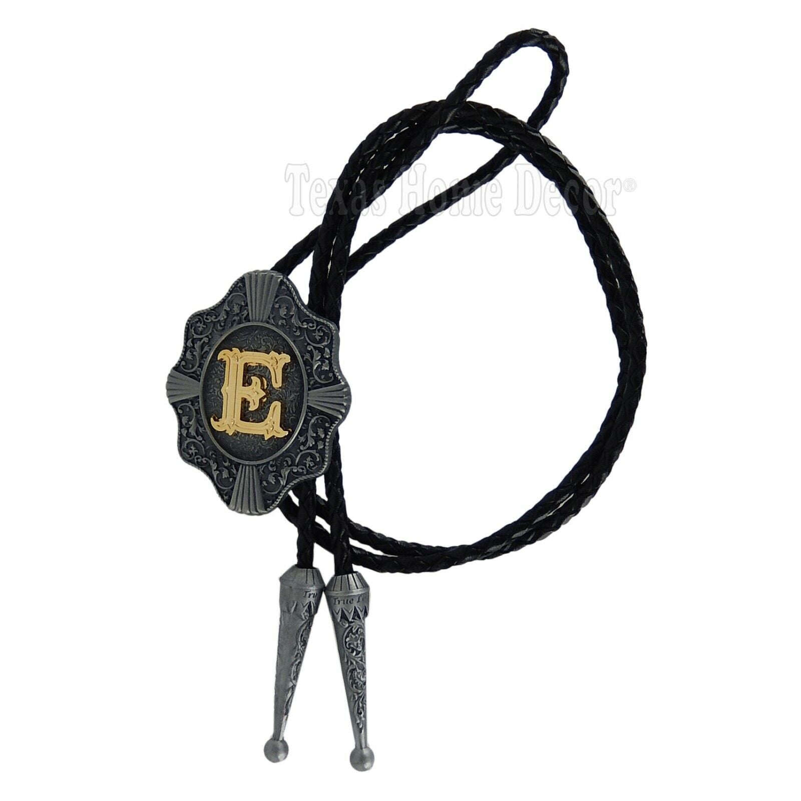 Initial Letter "E" Bolo Tie Western 38" Genuine Leather Cord Detailed Tips