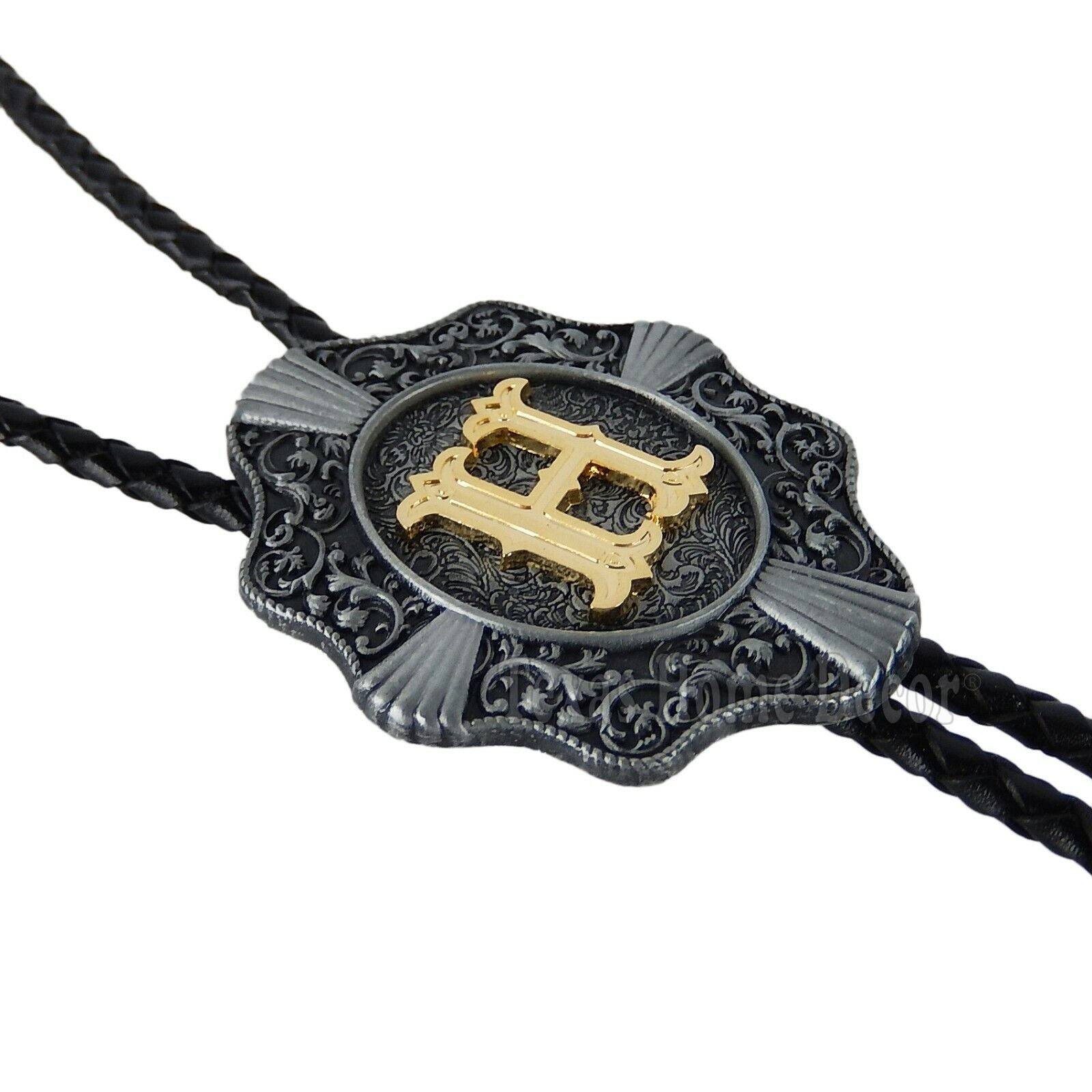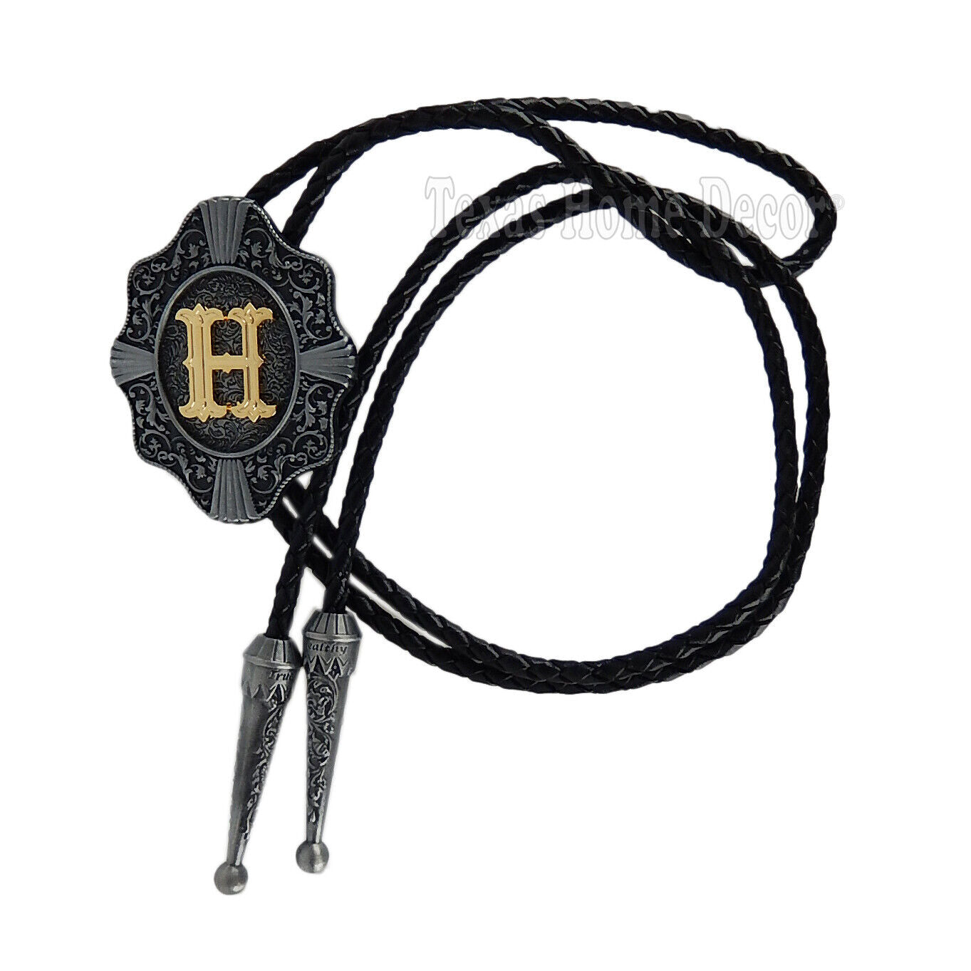 Initial Letter "H" Bolo Tie Western 38" Genuine Leather Cord Detailed Tips