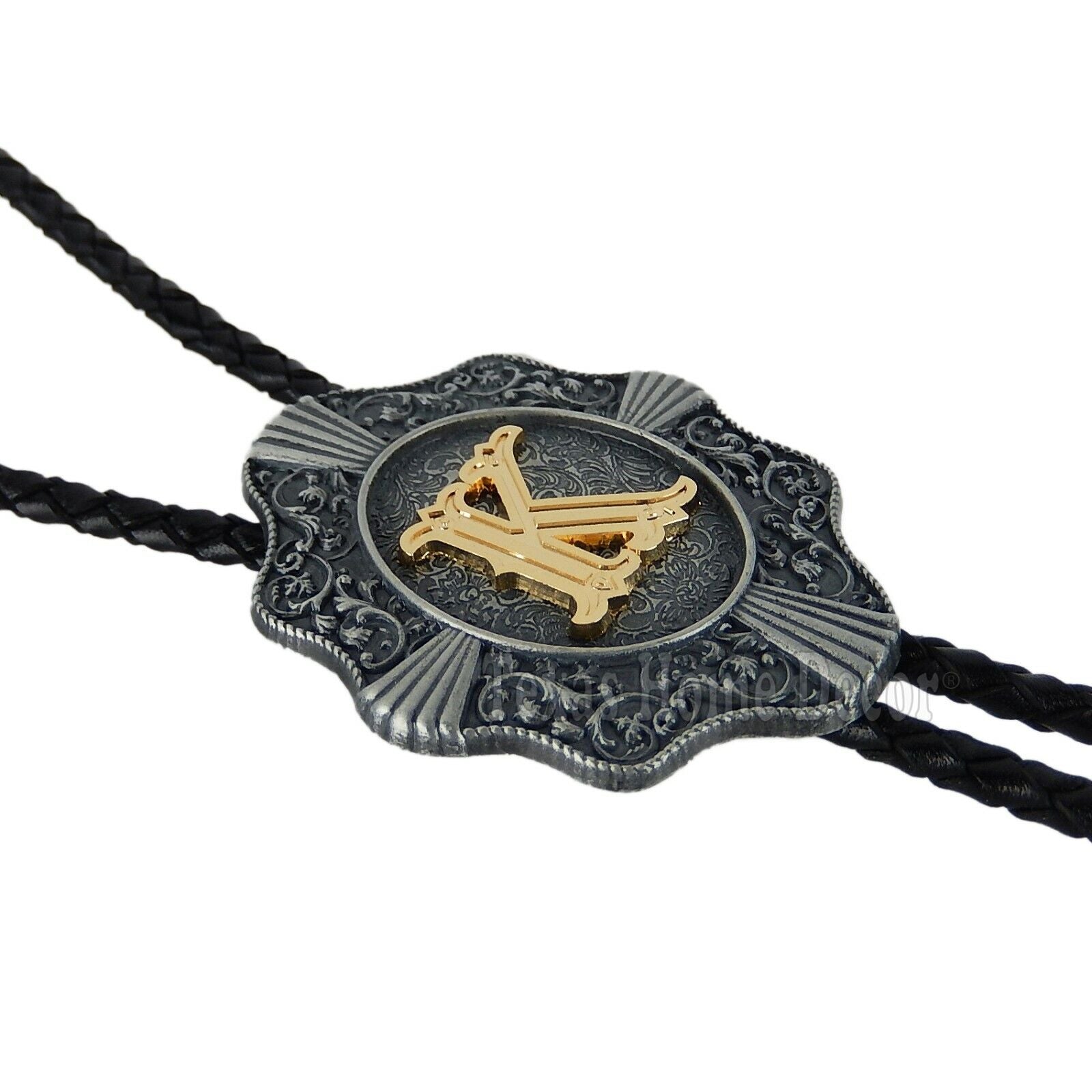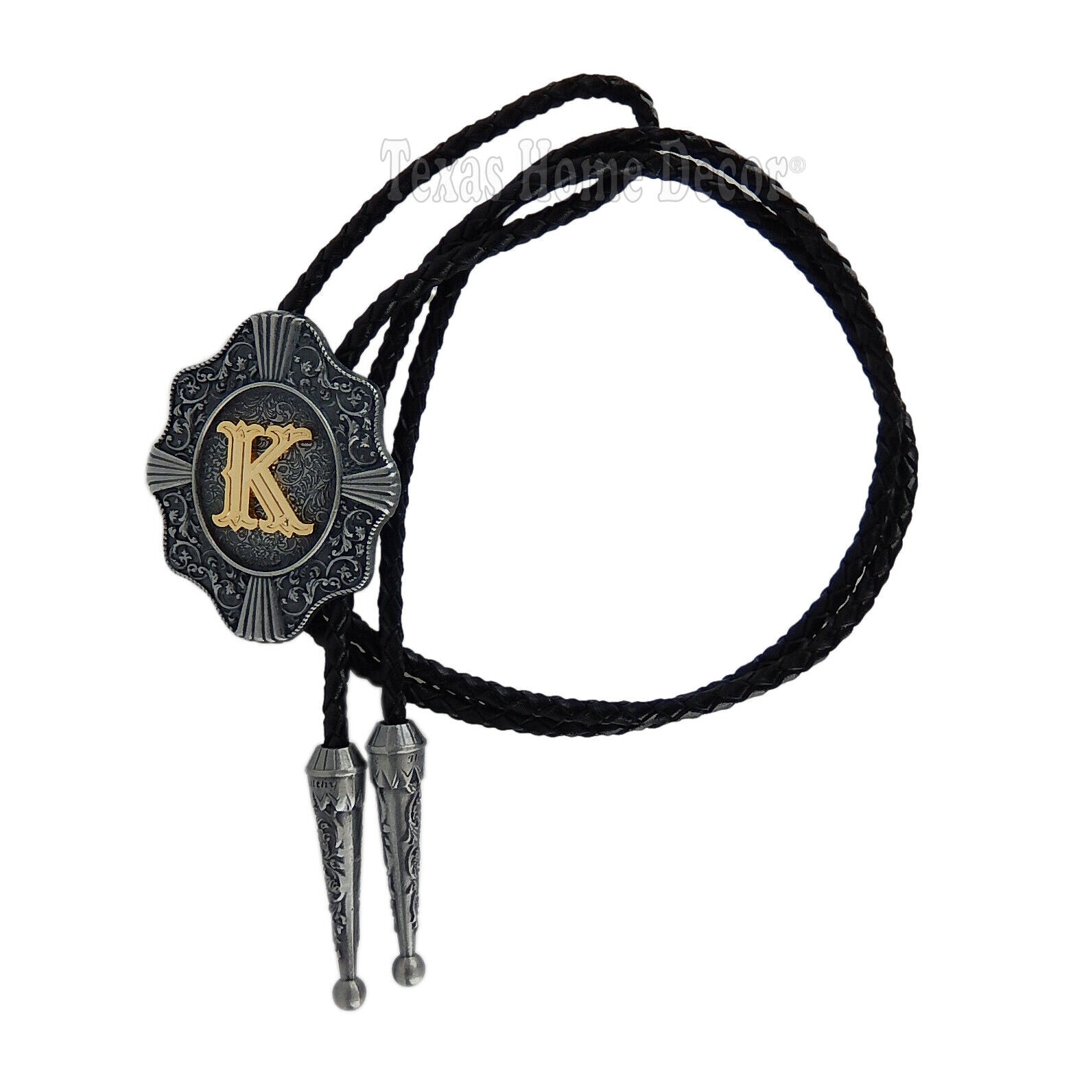 Initial Letter "K" Bolo Tie Western 38" Genuine Leather Cord Detailed Tips