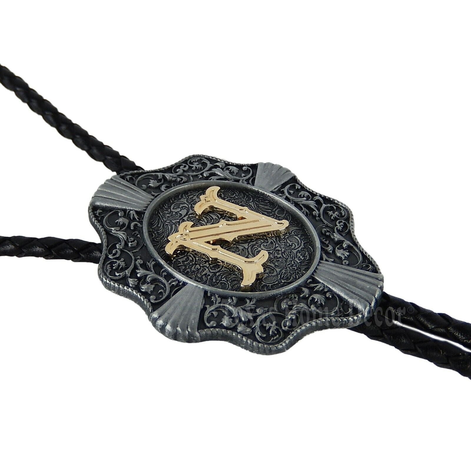 Initial Letter "N" Bolo Tie Western 38" Genuine Leather Cord Detailed Tips