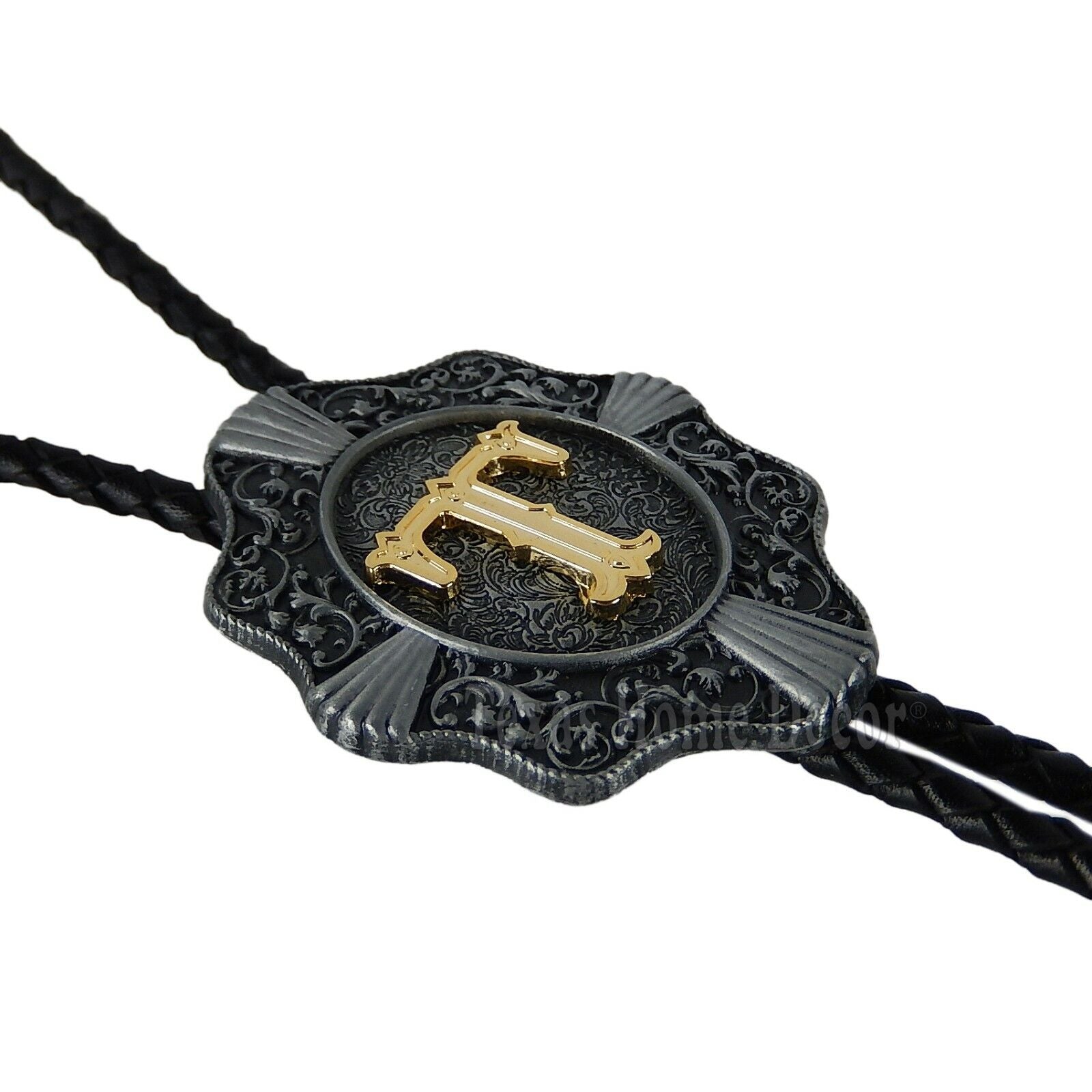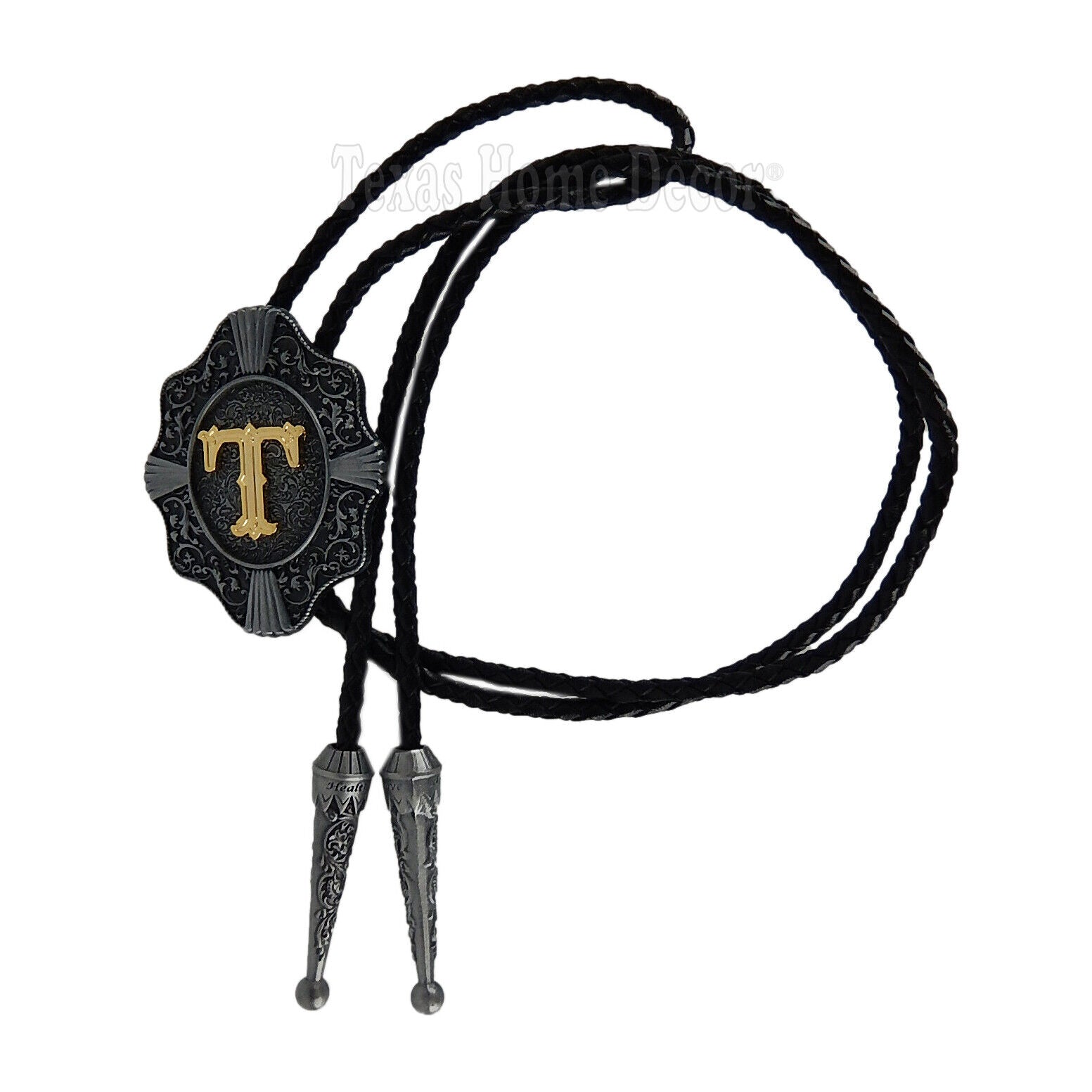 Initial Letter "T" Bolo Tie Western 38" Genuine Leather Cord Detailed Tips