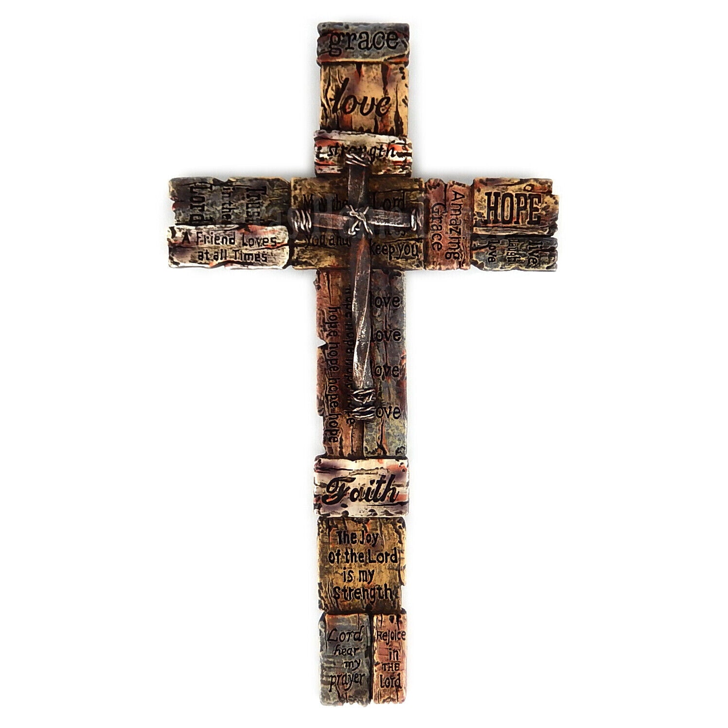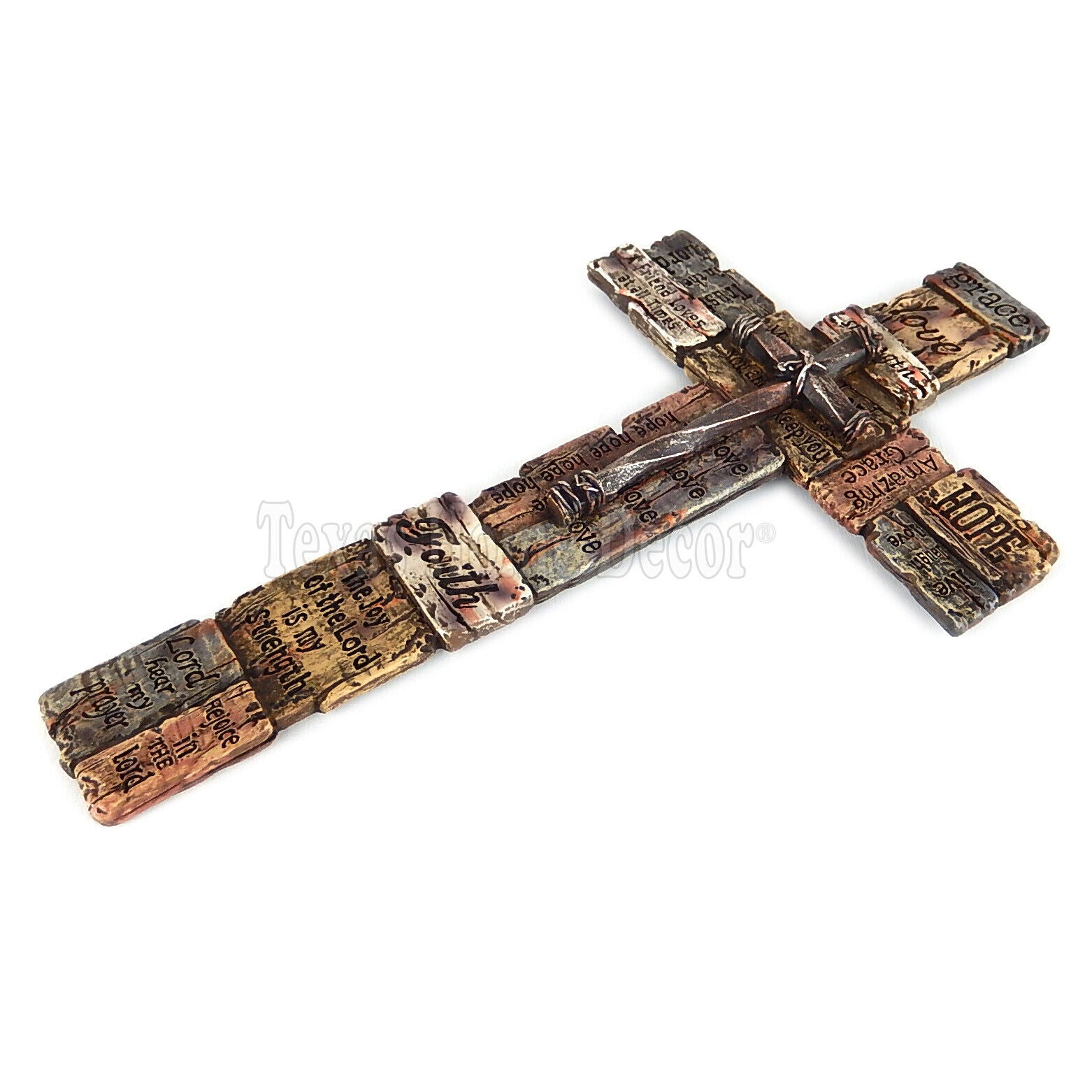 Inspirational Messages Tile Wall Cross Polyresin Hand Painted Religious 12 inch