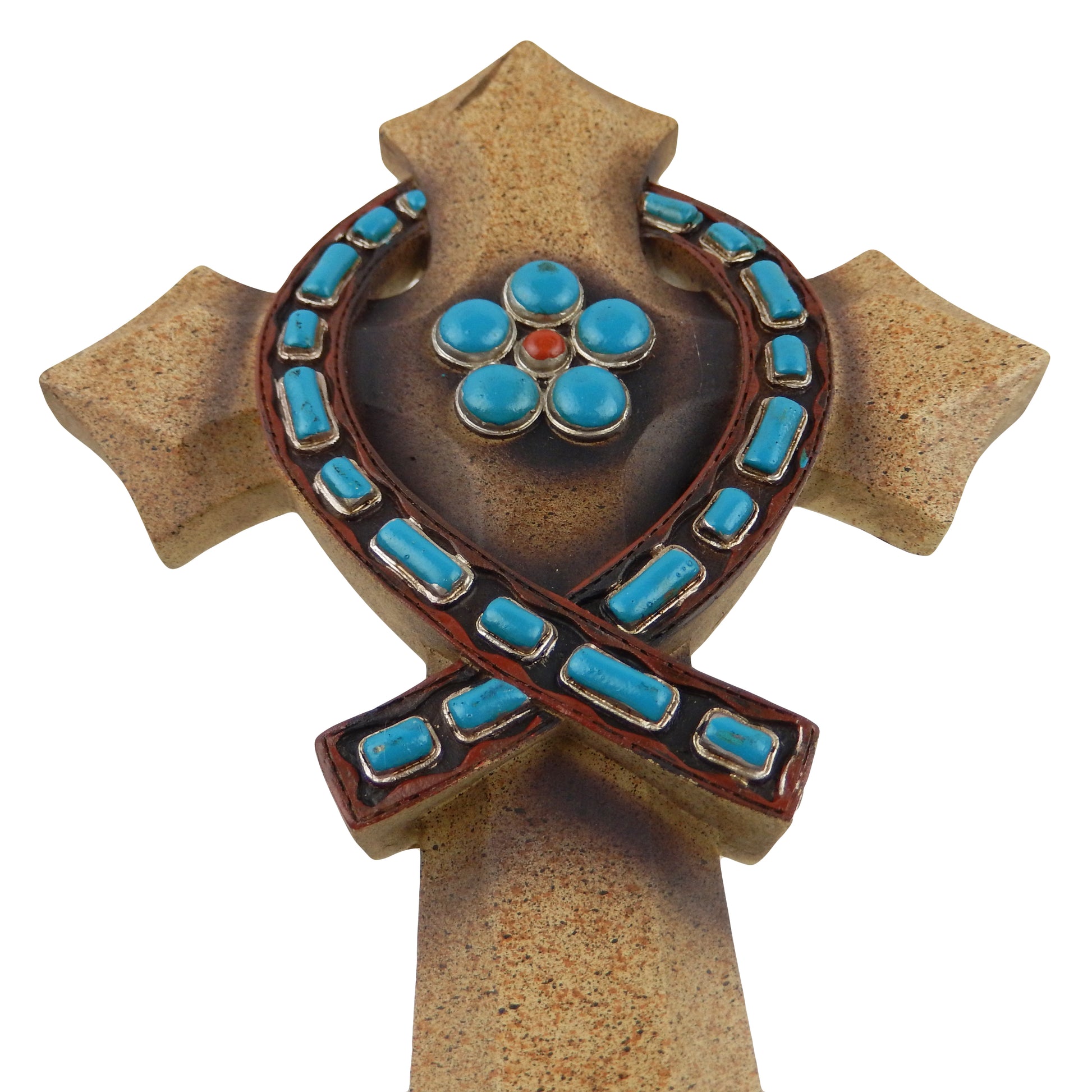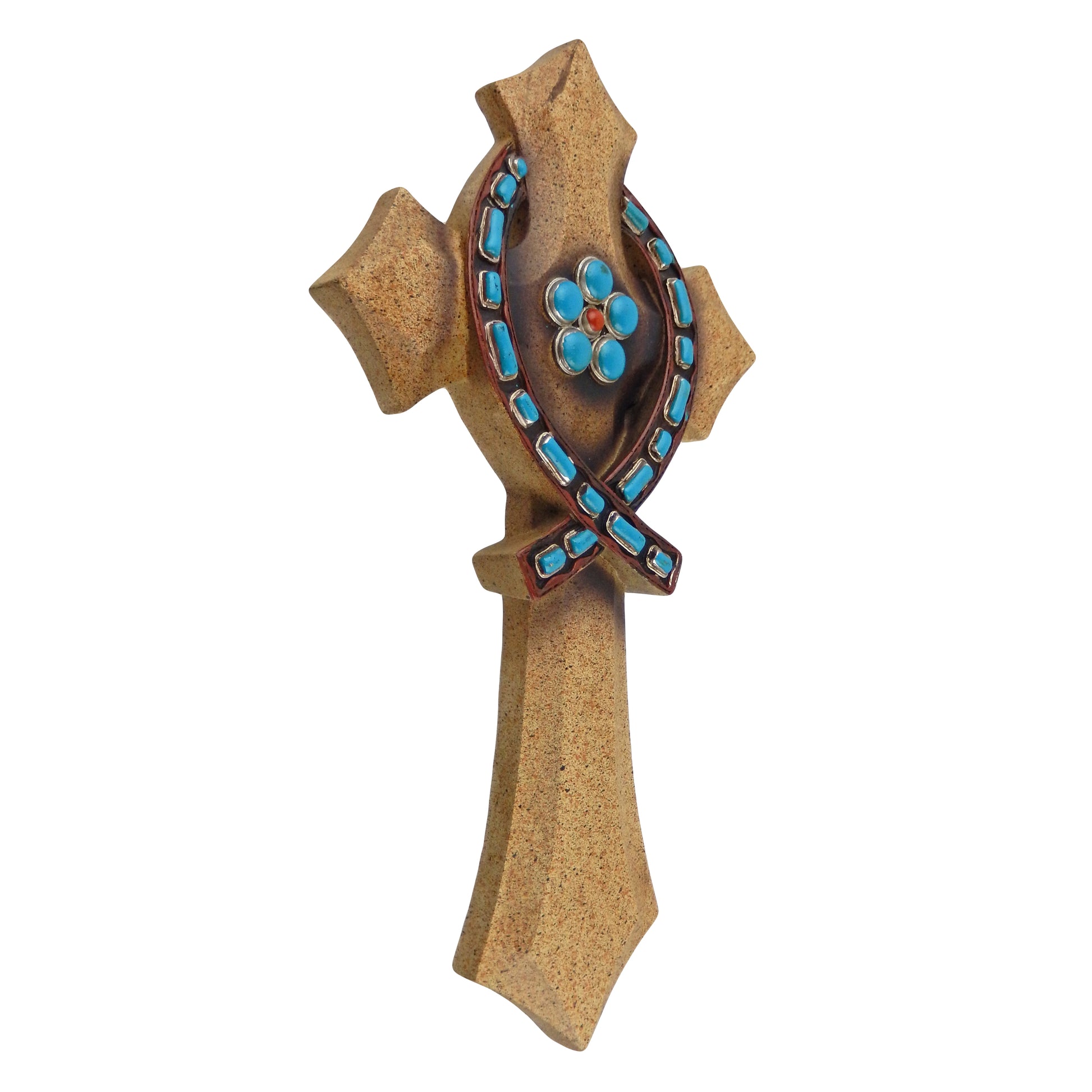 Jesus Fish Ichthys Symbol Turquoise Decorative Wall Hanging Cross Stone Look 12 x 7 inch