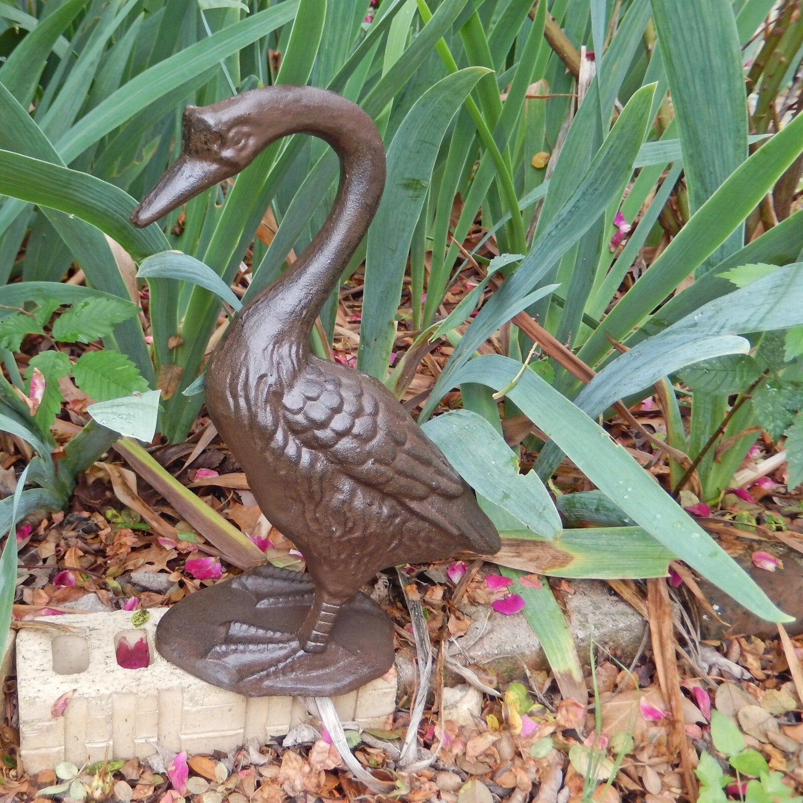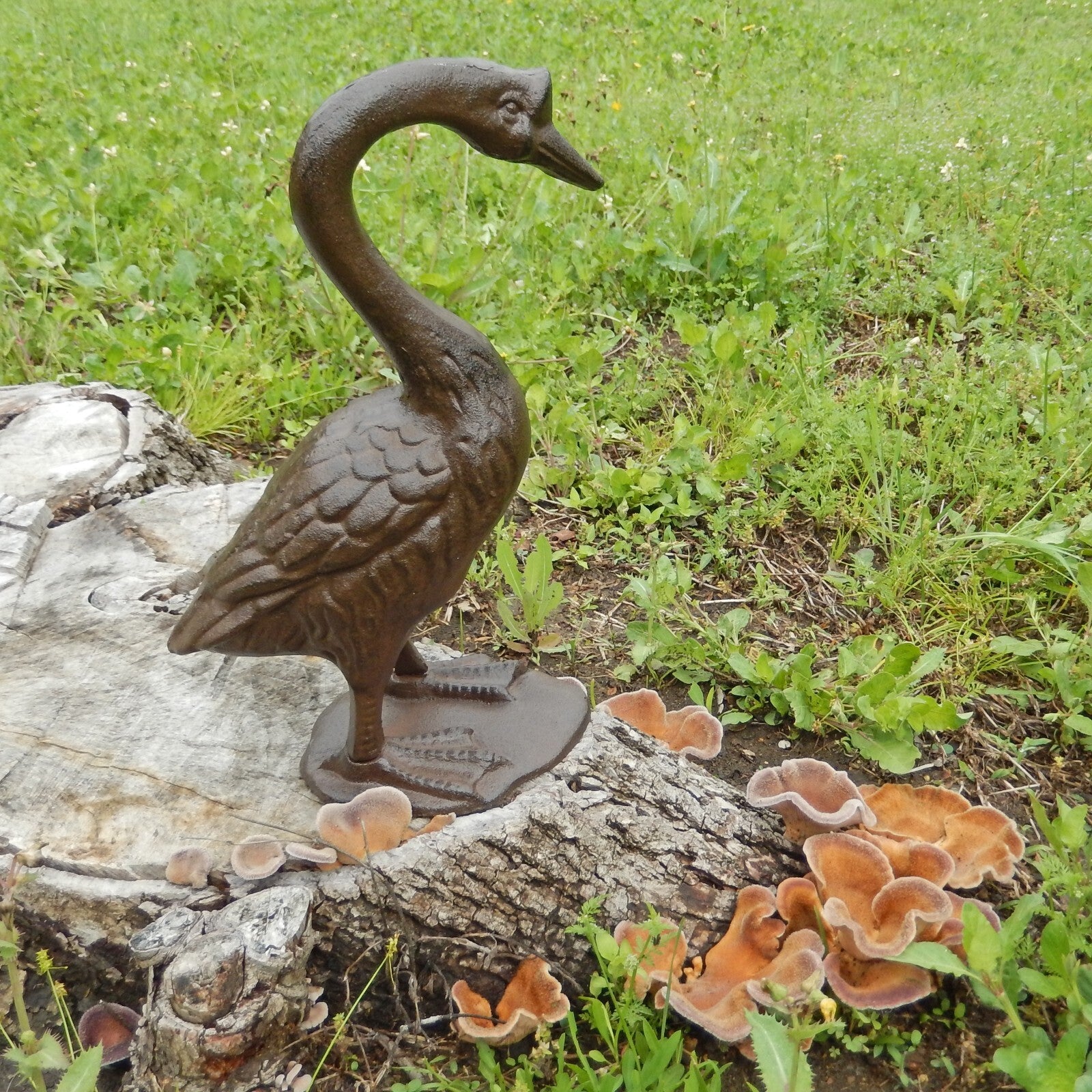 Large Cast Iron Goose Figurine Statue Garden Yard Pond Fountain Decor 12.5 inch