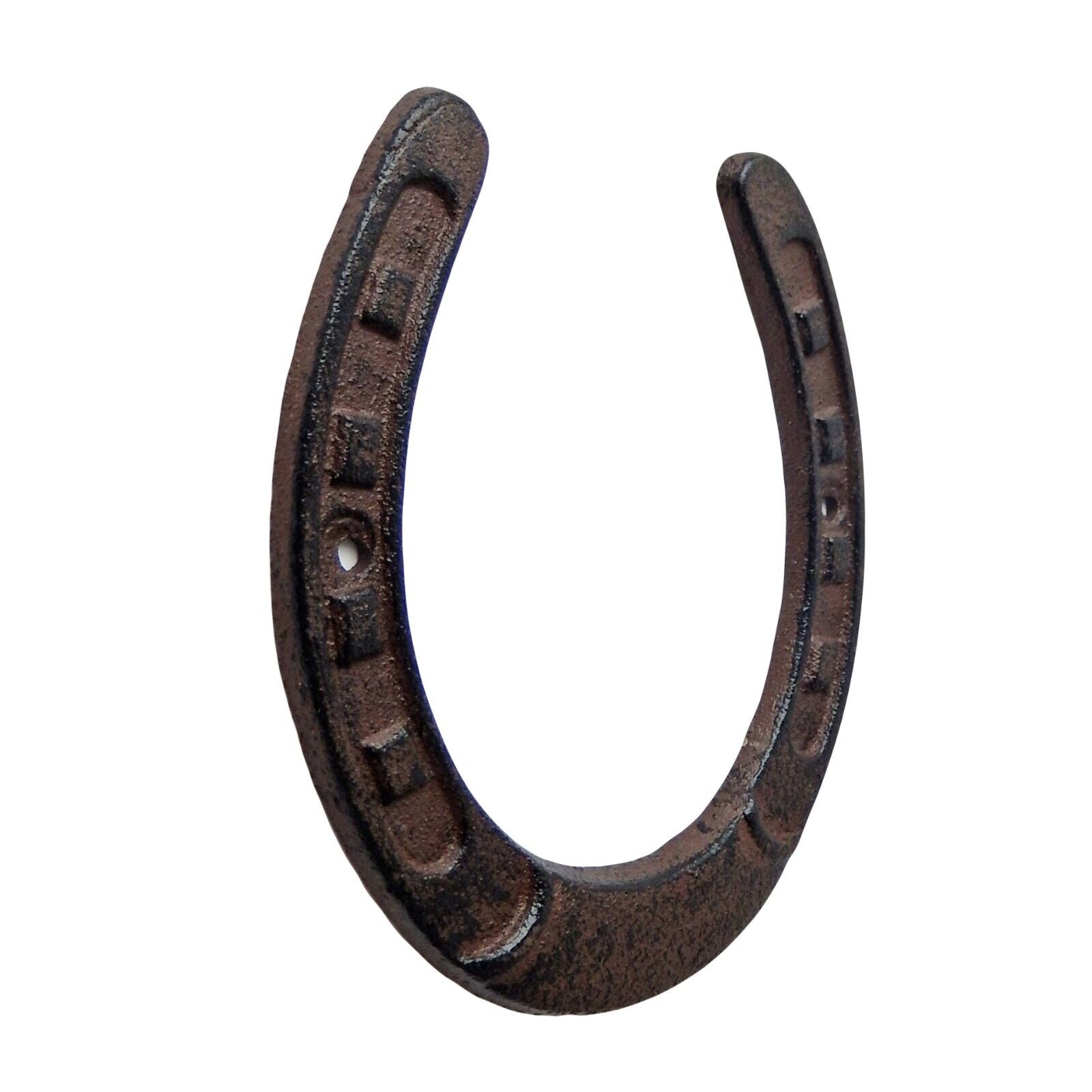 Large Cast Iron Rustic Lucky Horseshoe Decorative Brown Western Decor 6.5 x 6 in