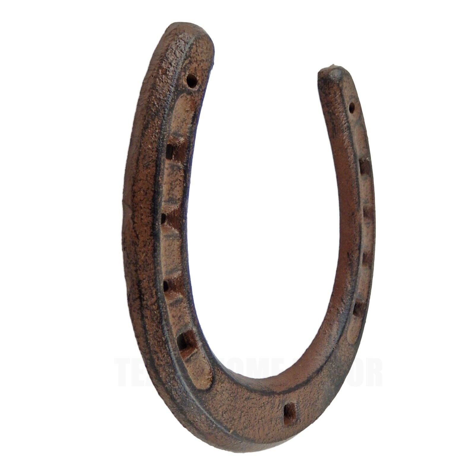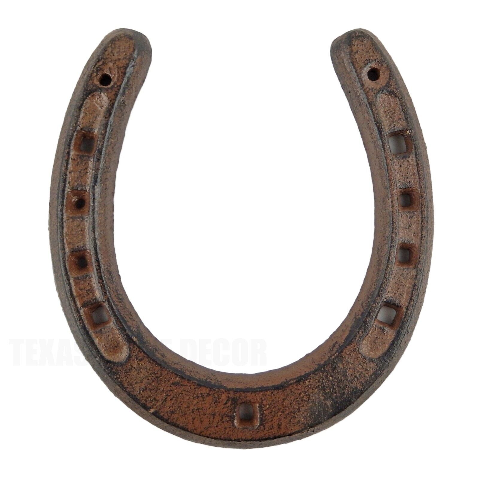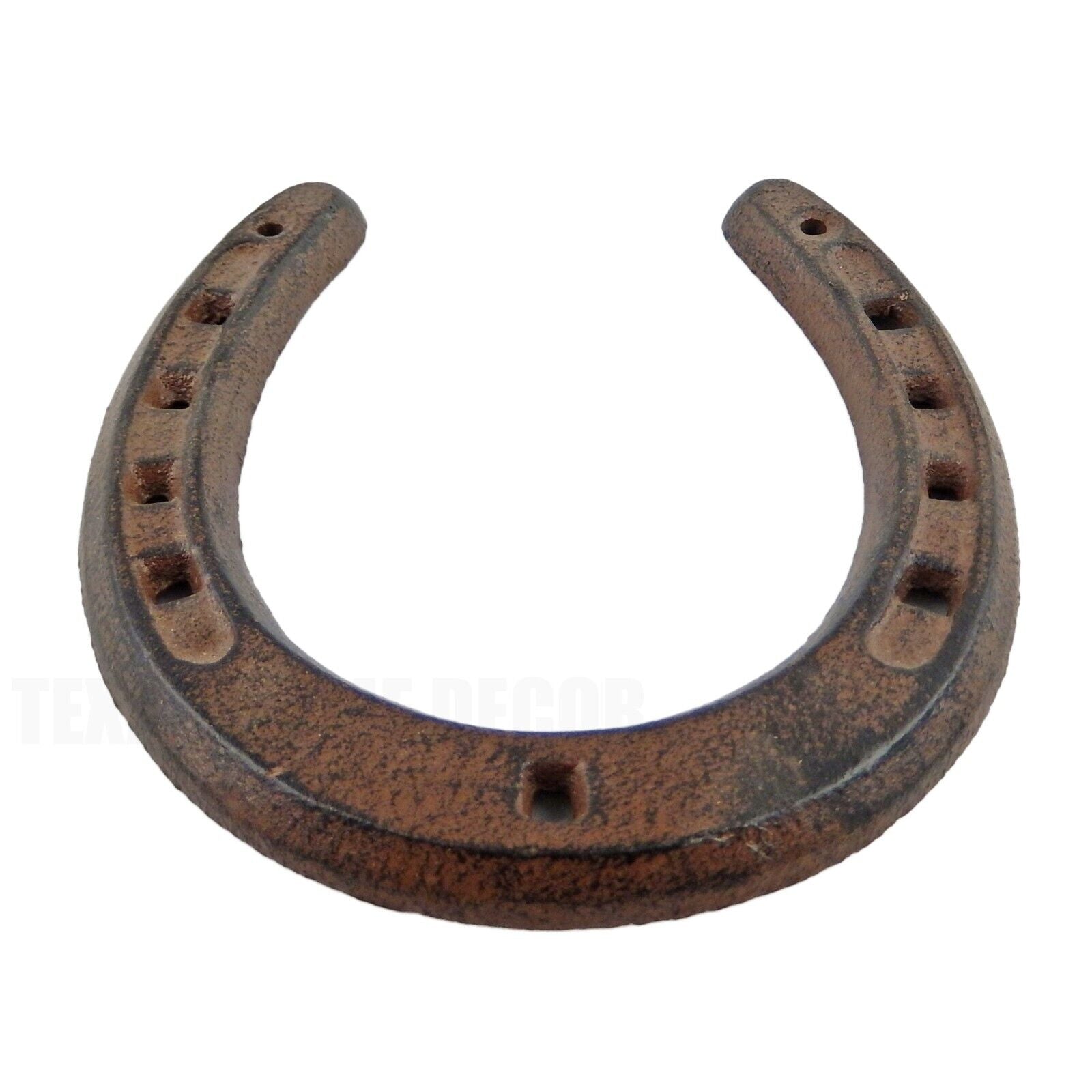 Large Cast Iron Rustic Lucky Horseshoe Decorative Brown Western Decor 7" x 6.5"