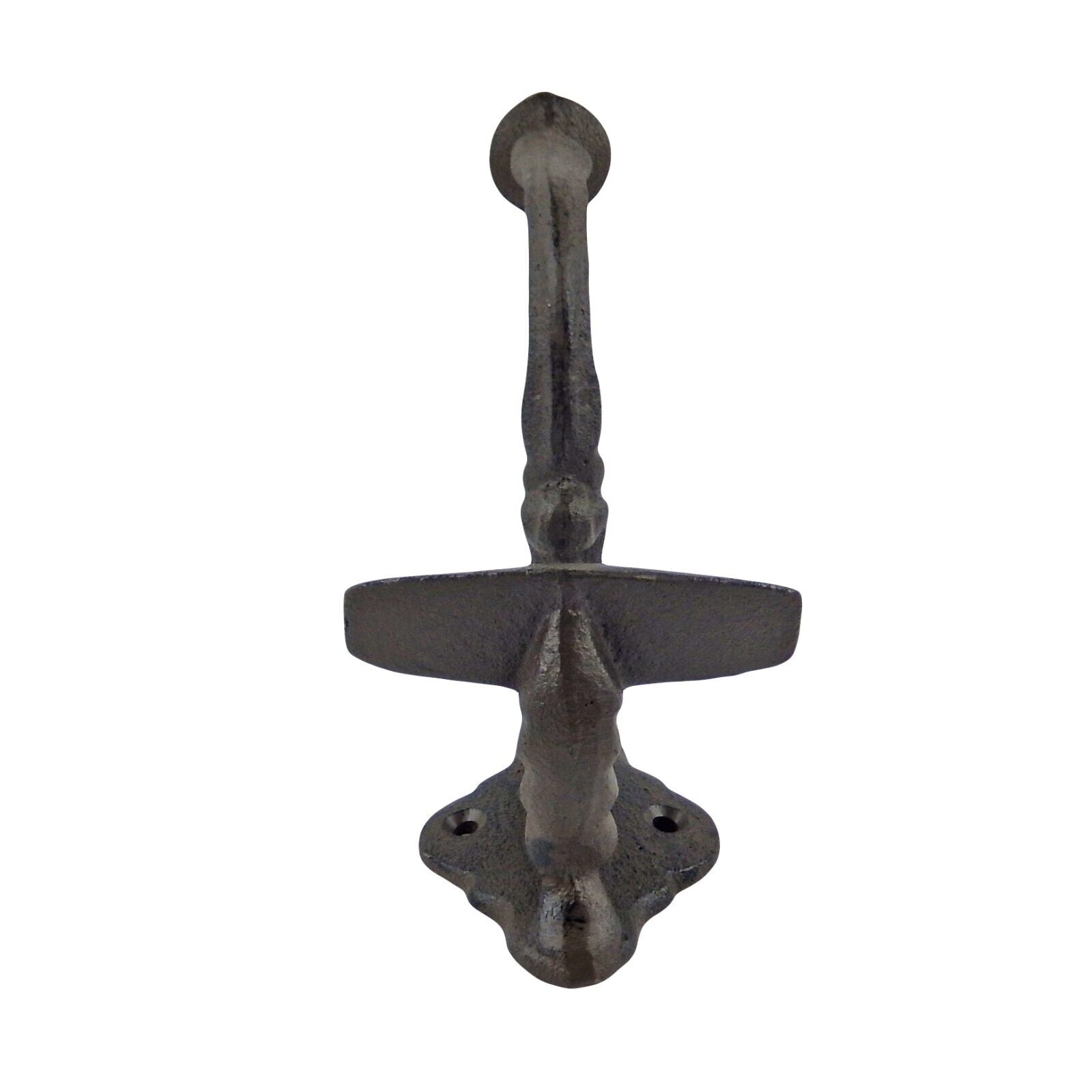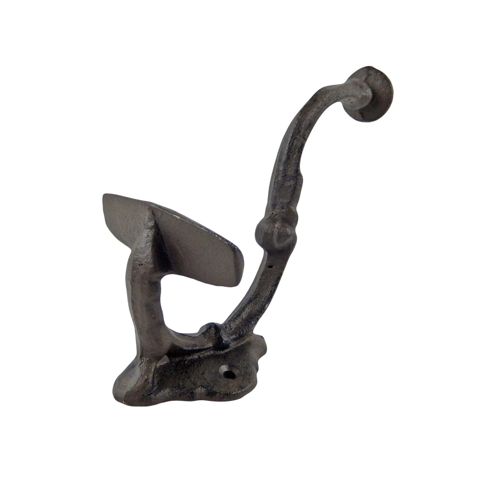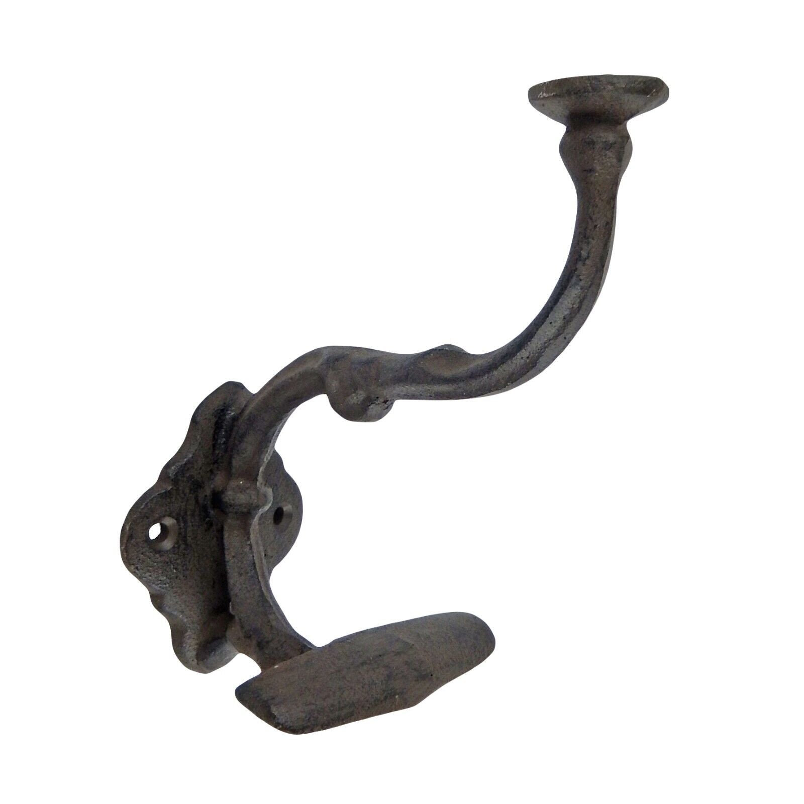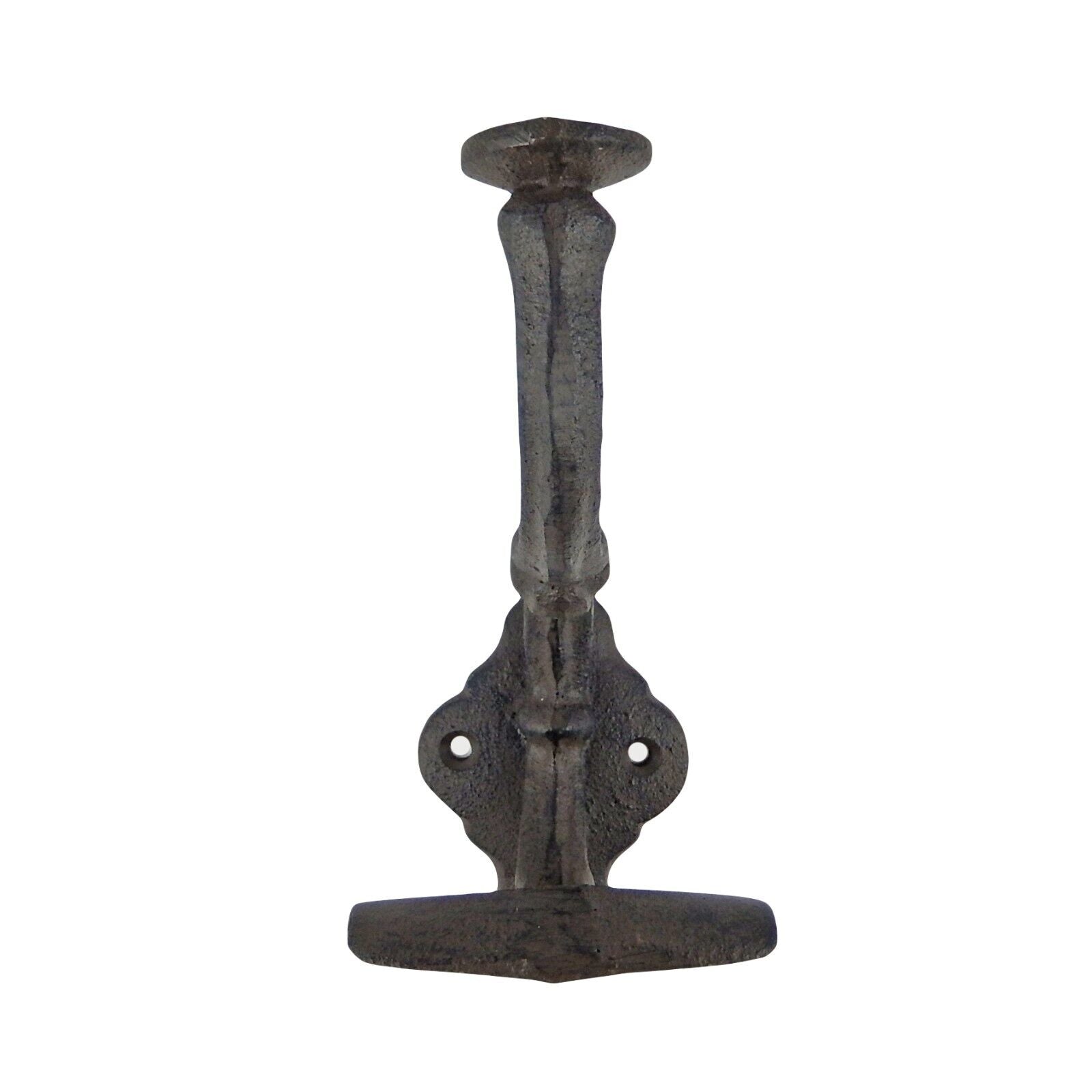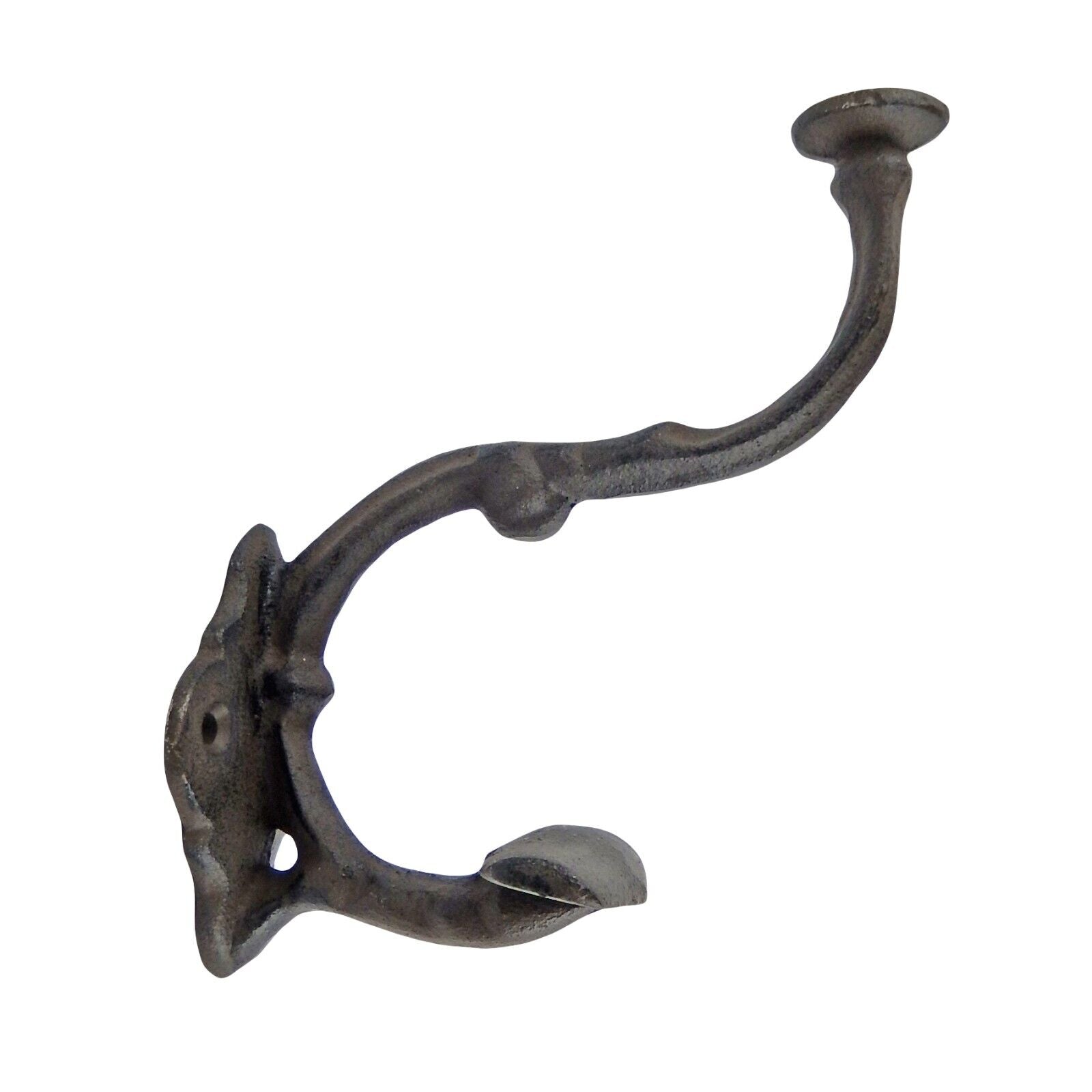 Add some vintage charm to your entryway with this Heavy Duty Cast Iron Coat & Hat Double Wall Hook. With a Double Wall Hook design, it provides space to hang two items, your hat at the top, and your coat at the bottom. The Antique Brown finish and Industrial Rustic theme add a touch of uniqueness to the hook. Measuring 6.5 inches in height and 2.5 inches in width, it's perfect for wall mounting. The tip of the top hook extends 5 inches when mounted. The Traditional hook style and Antique style will instantly elevate the look of your space. Made of durable Cast Iron, it can hold heavy coats and hats with ease. This heavy duty double hook comes with two screw holes to mount it. (Mounting screws not included)