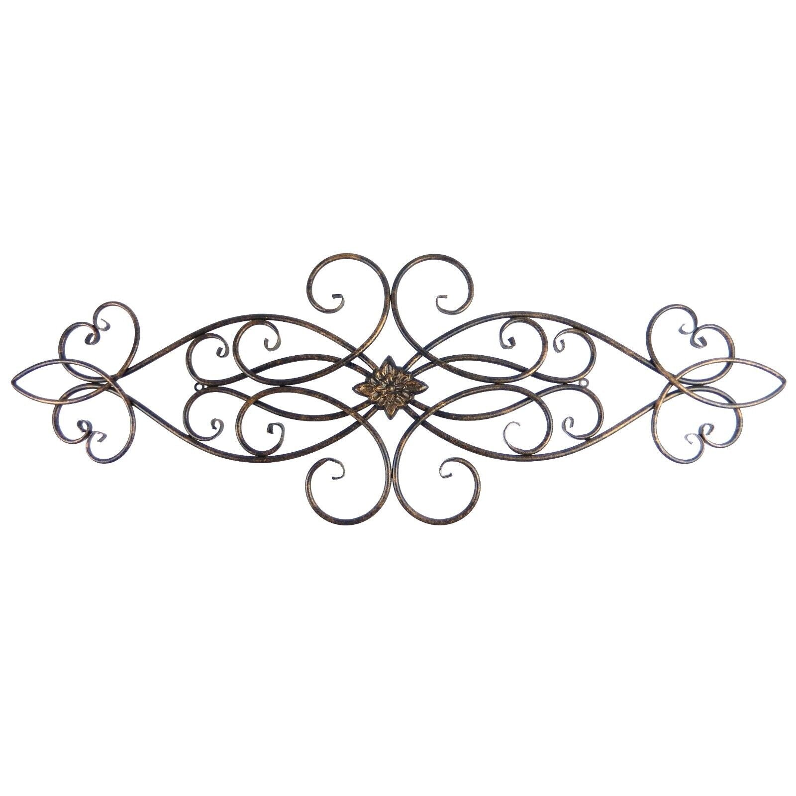 Large Elegant Metal Scrolls Wall Decor Flower Medallion Black Gold 36.75 inch