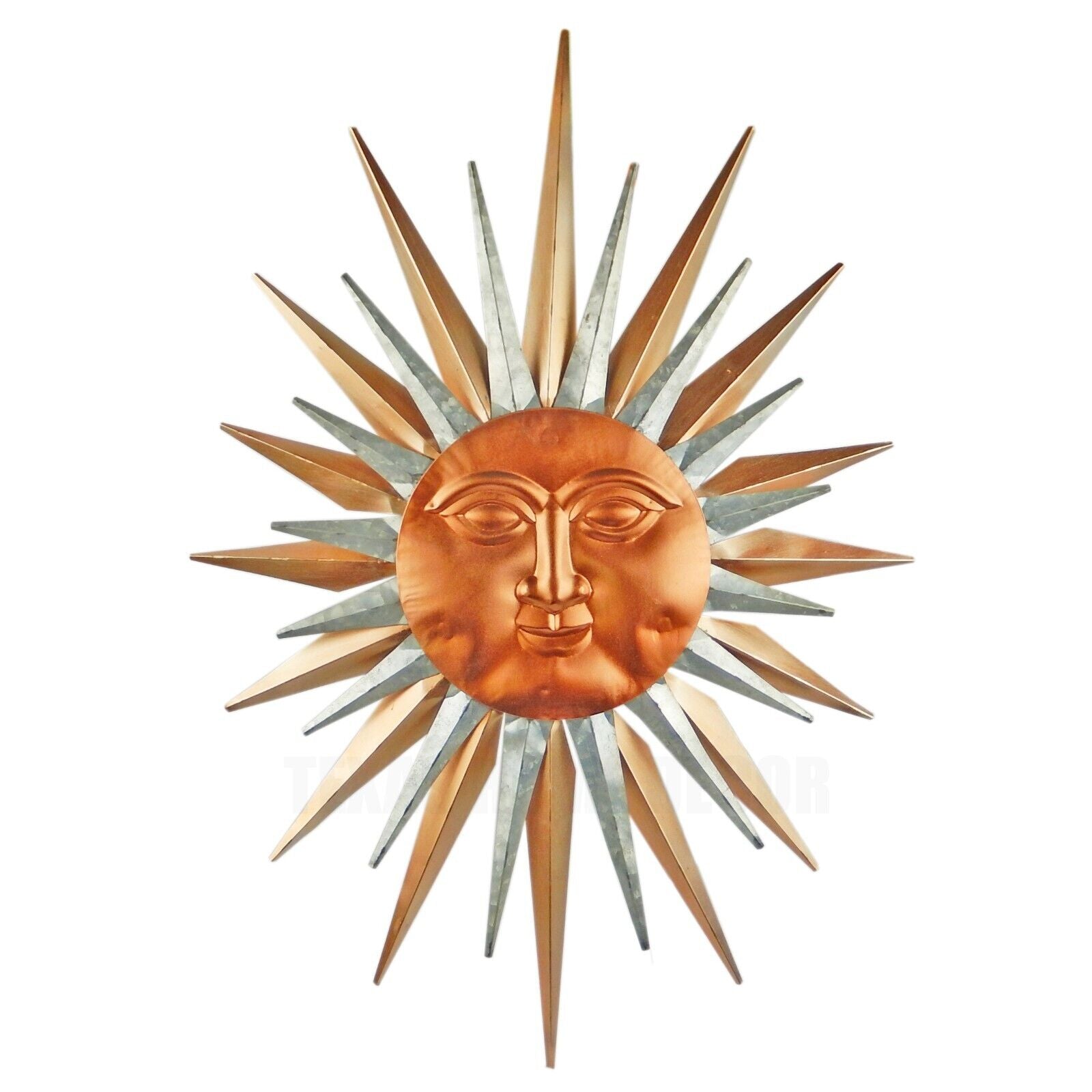 Large Garden Metal Sun Face Wall Decor Metallic Silver Copper Rays 32" x 22 #UW2656