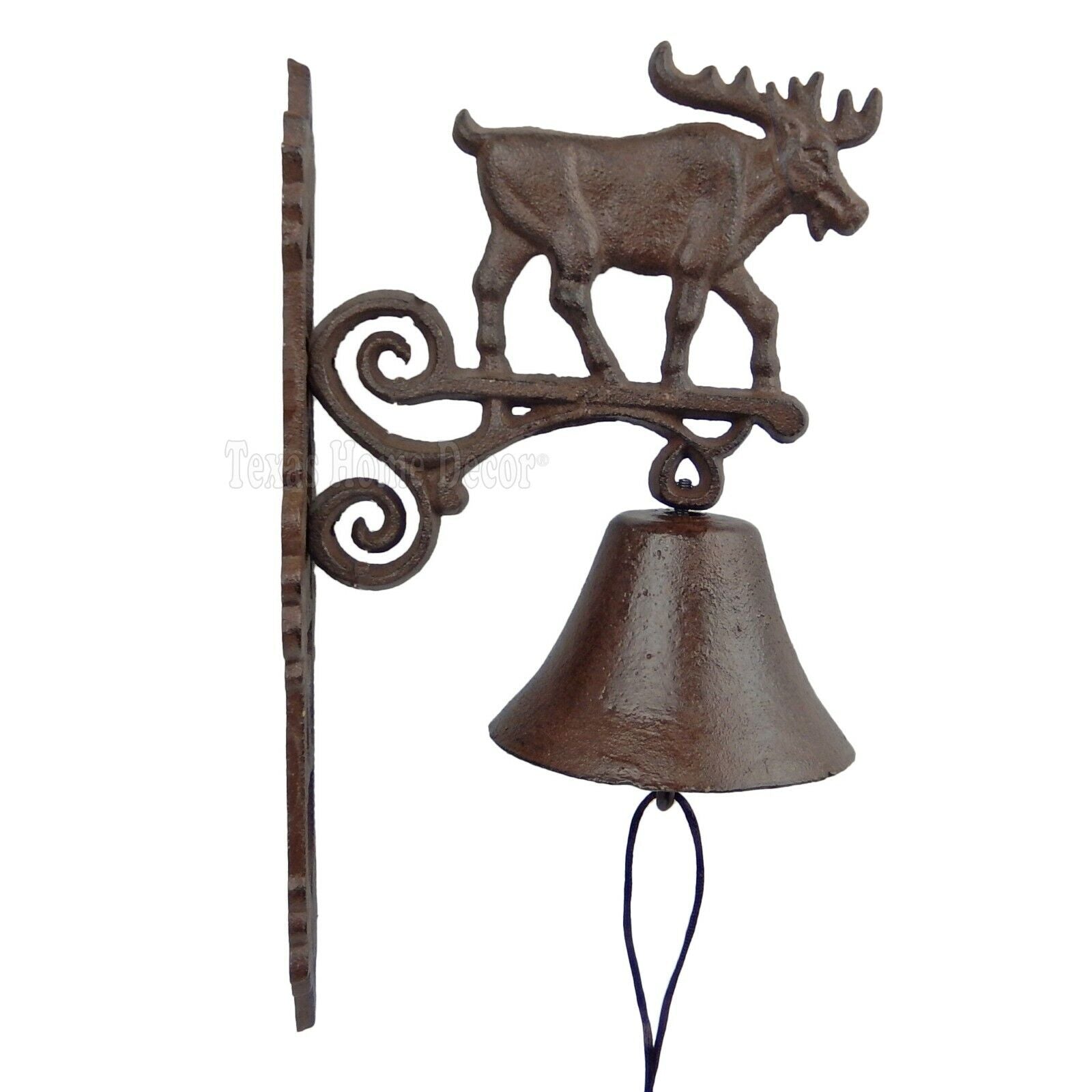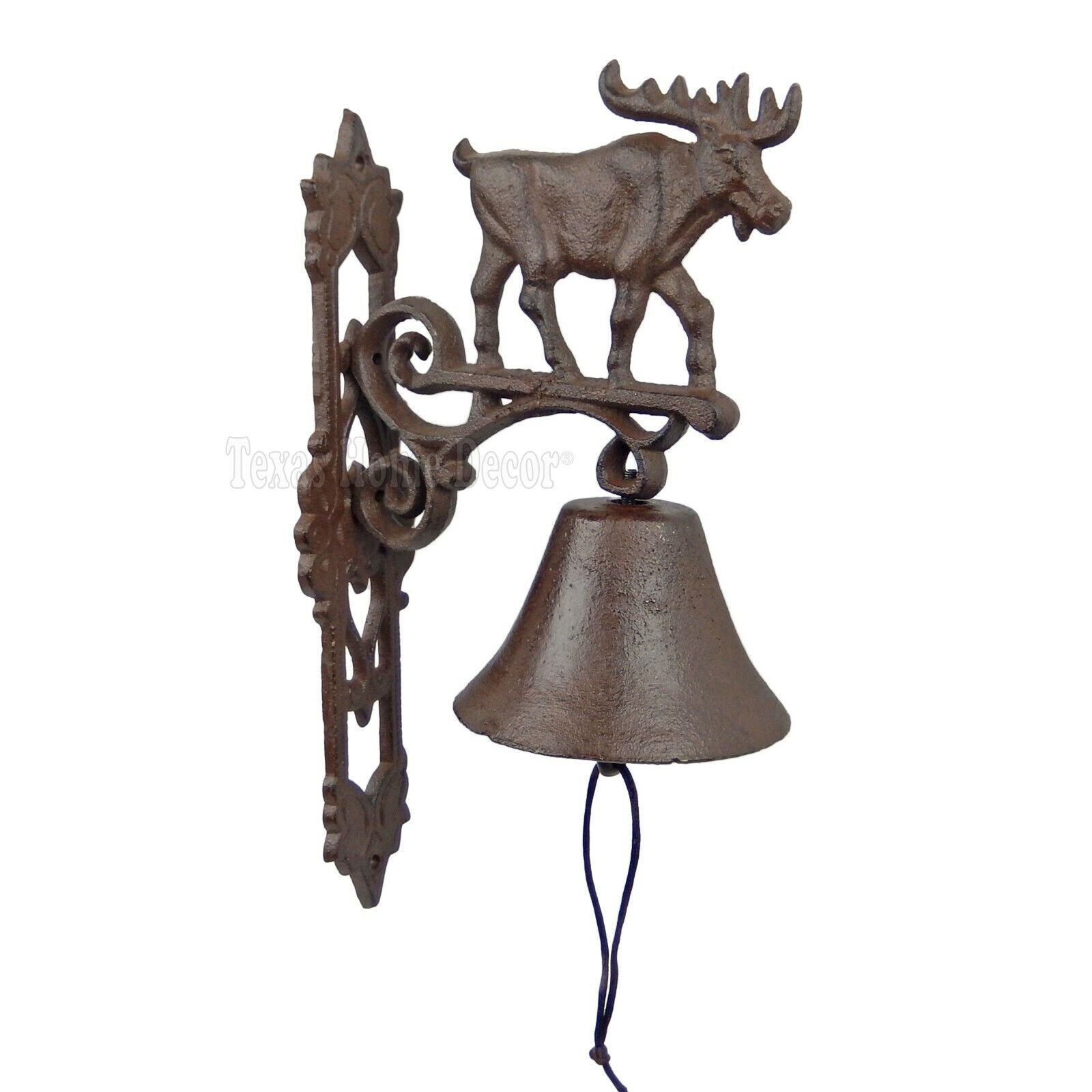 Large Moose Dinner Bell Cast Iron Fleur De Lis Scrolls Wall Mounted Rustic