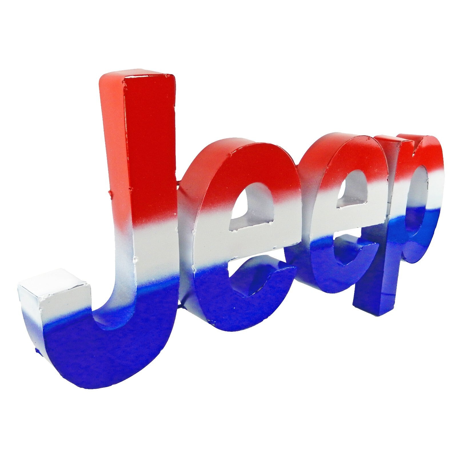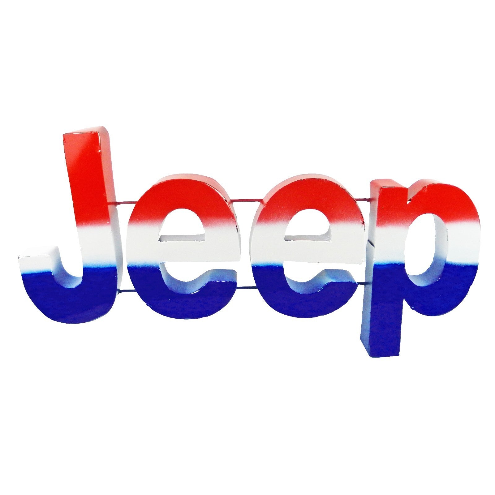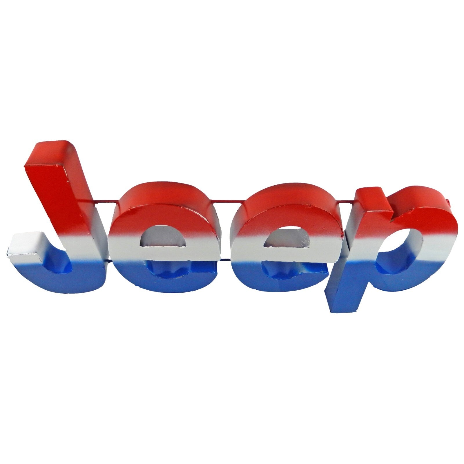 Large Patriotic Red White Blue Recycled Metal Jeep Wall Decor Sign 24 1/2 inch