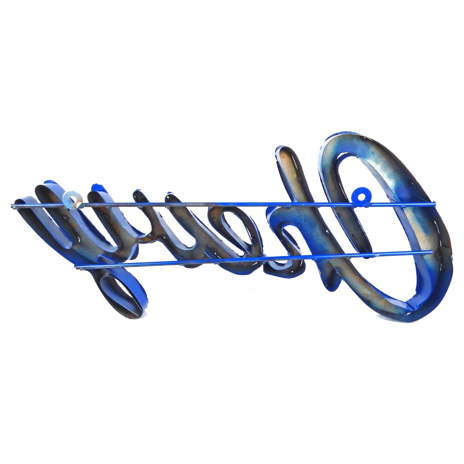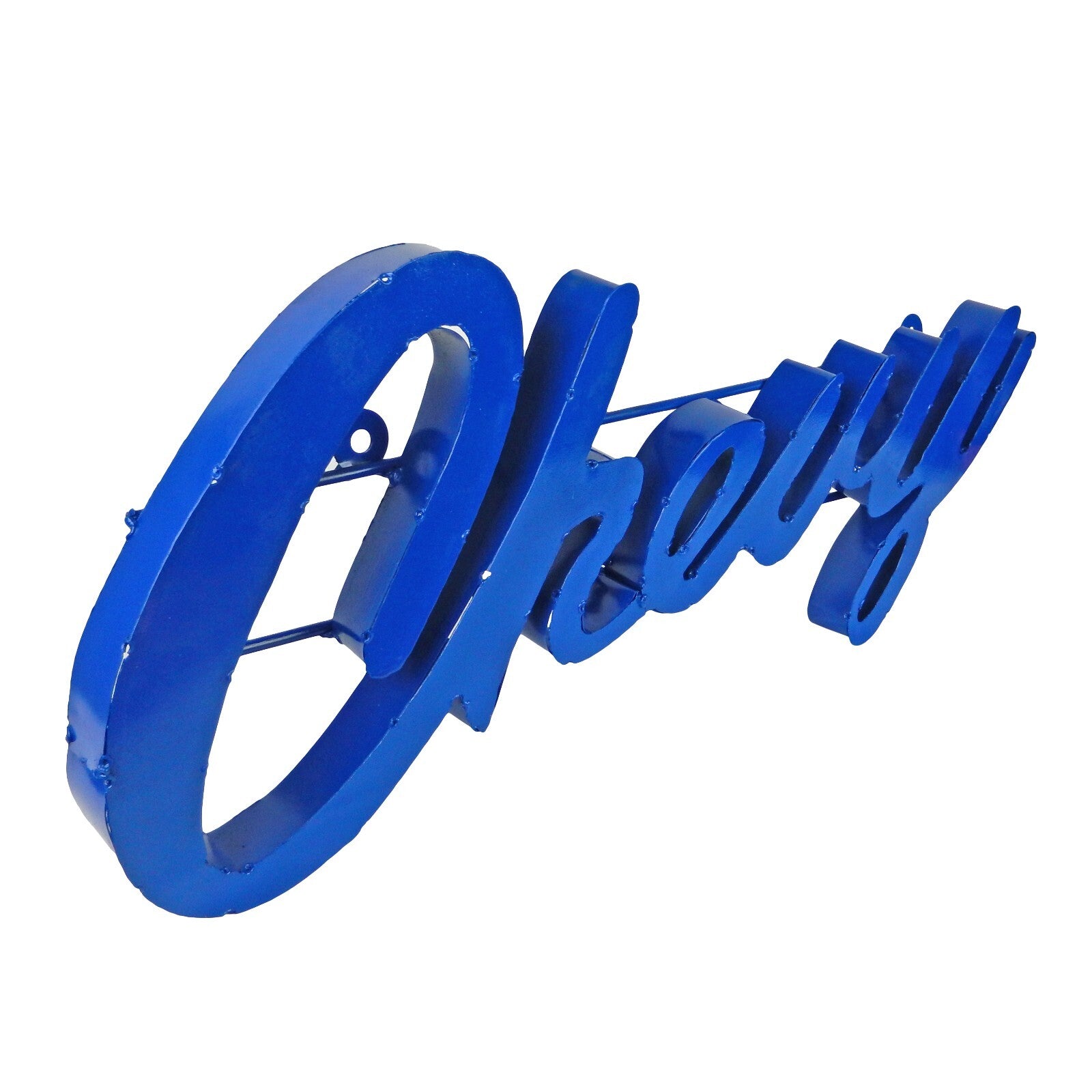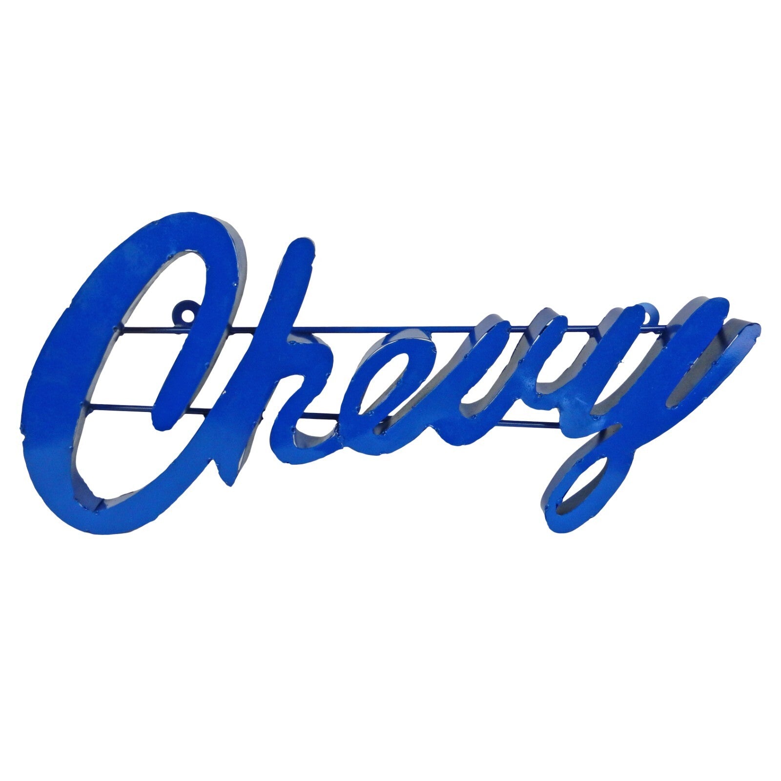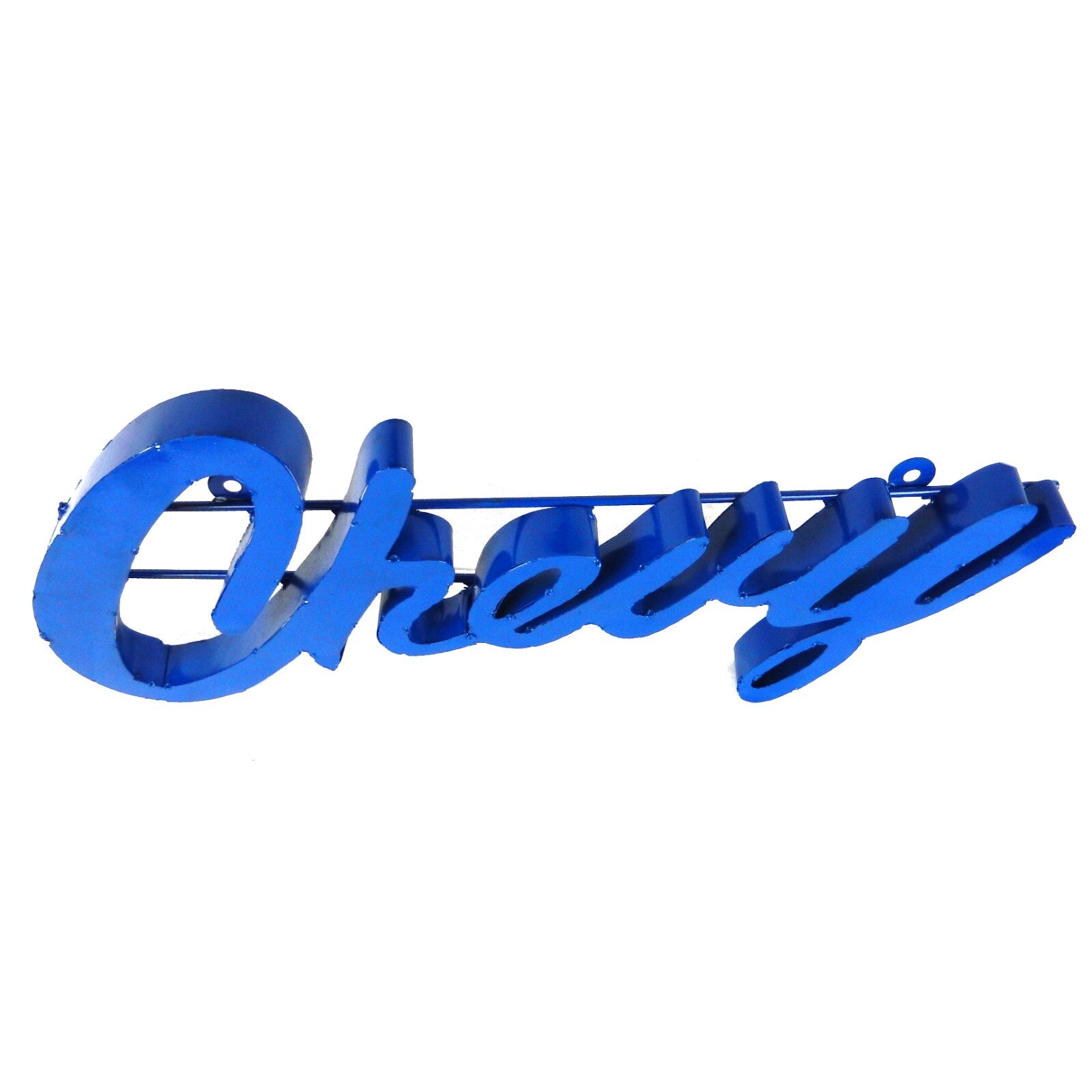 Large Recycled Metal Cursive Blue Chevy Logo Garage Wall Decor Sign Rustic Retro 25 in