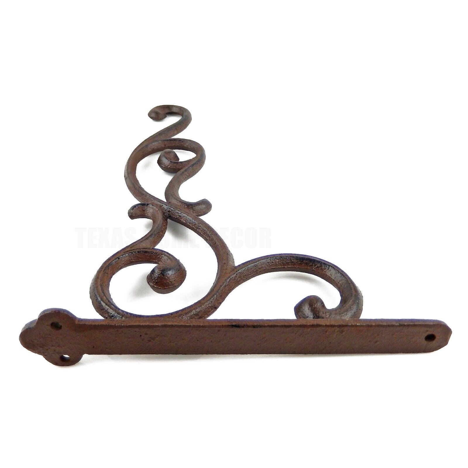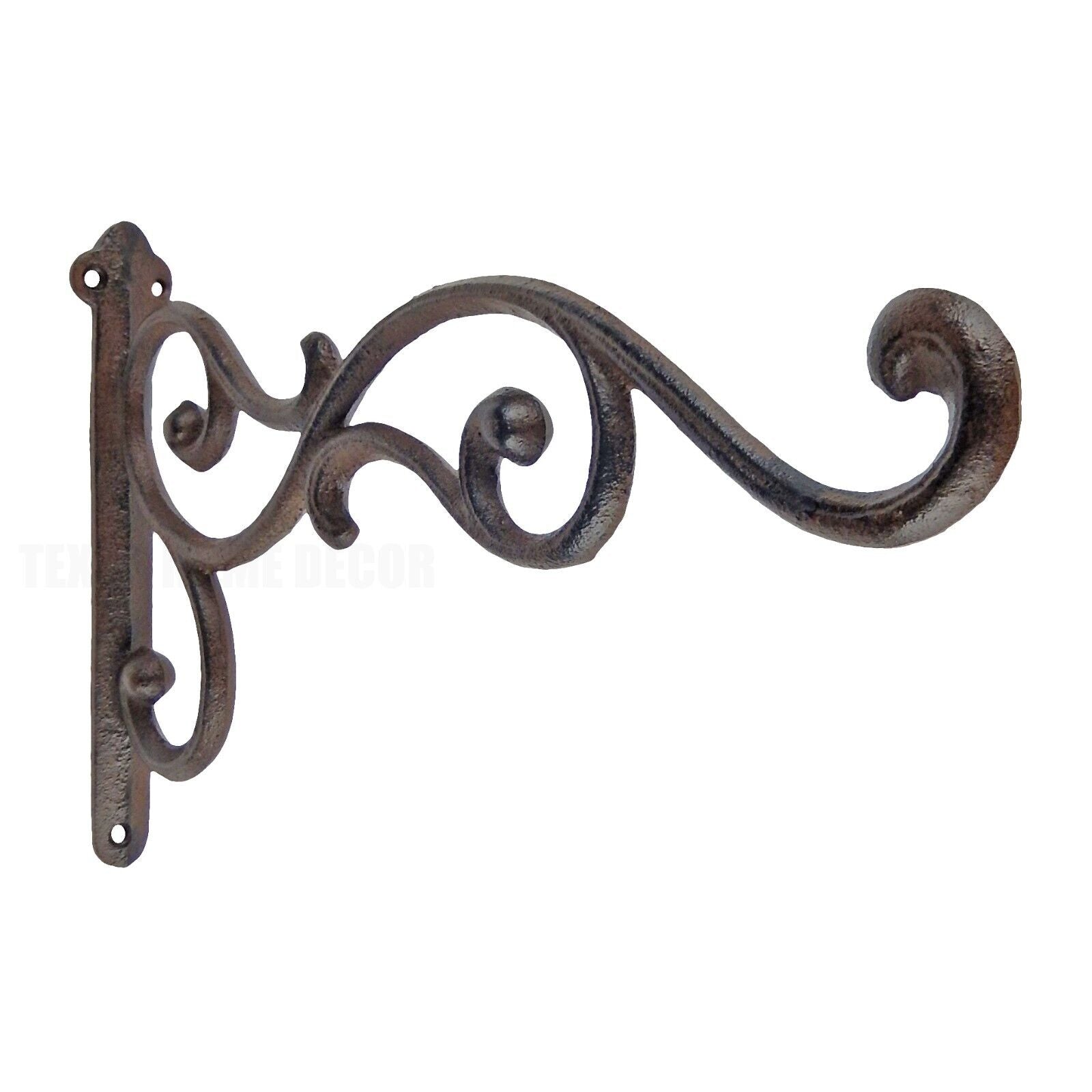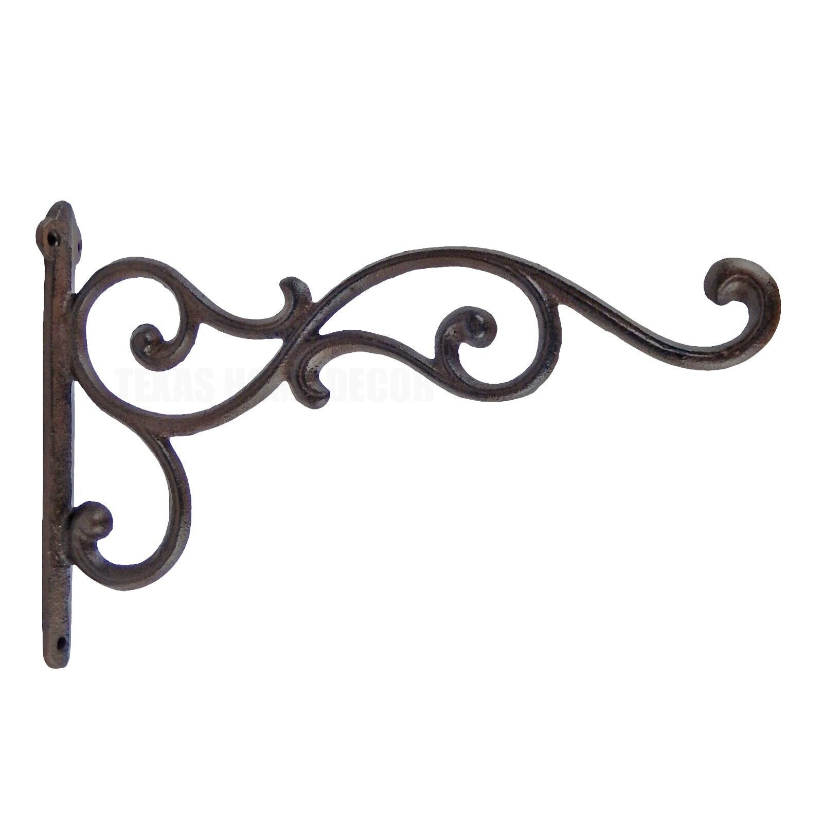 Large Scrolls Wall Hook Cast Iron Plant Flower Basket Hanger Rustic Brown 12.25"