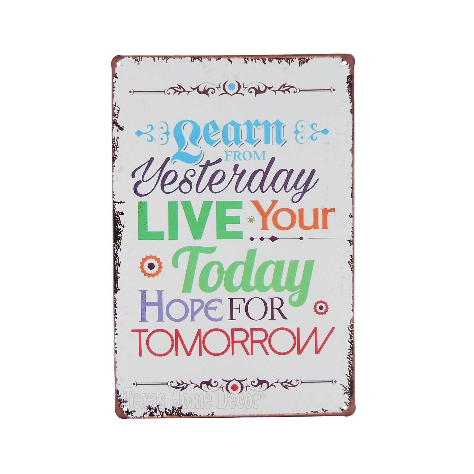 Learn From Yesterday Live Your Today Hope For Tomorrow Metal Tin Sign 11 3/4 in