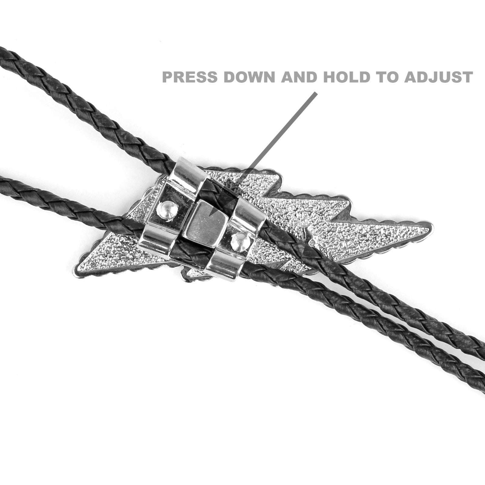Lightning Bolt Nickel & Black Bolo Tie Adjustable 36 inch Black Cord Made in USA