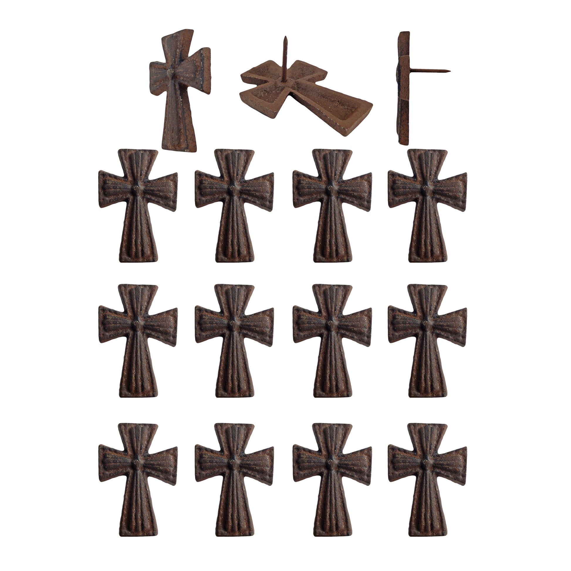 Lot 12 Cross Nail Craft Pin Nail Custom Work Cast Iron Western Tacks Rustic 2x3"