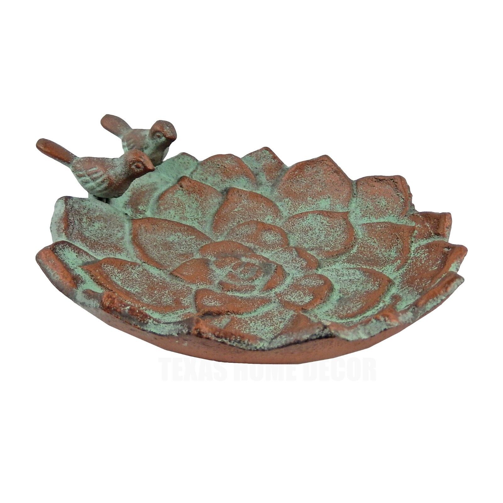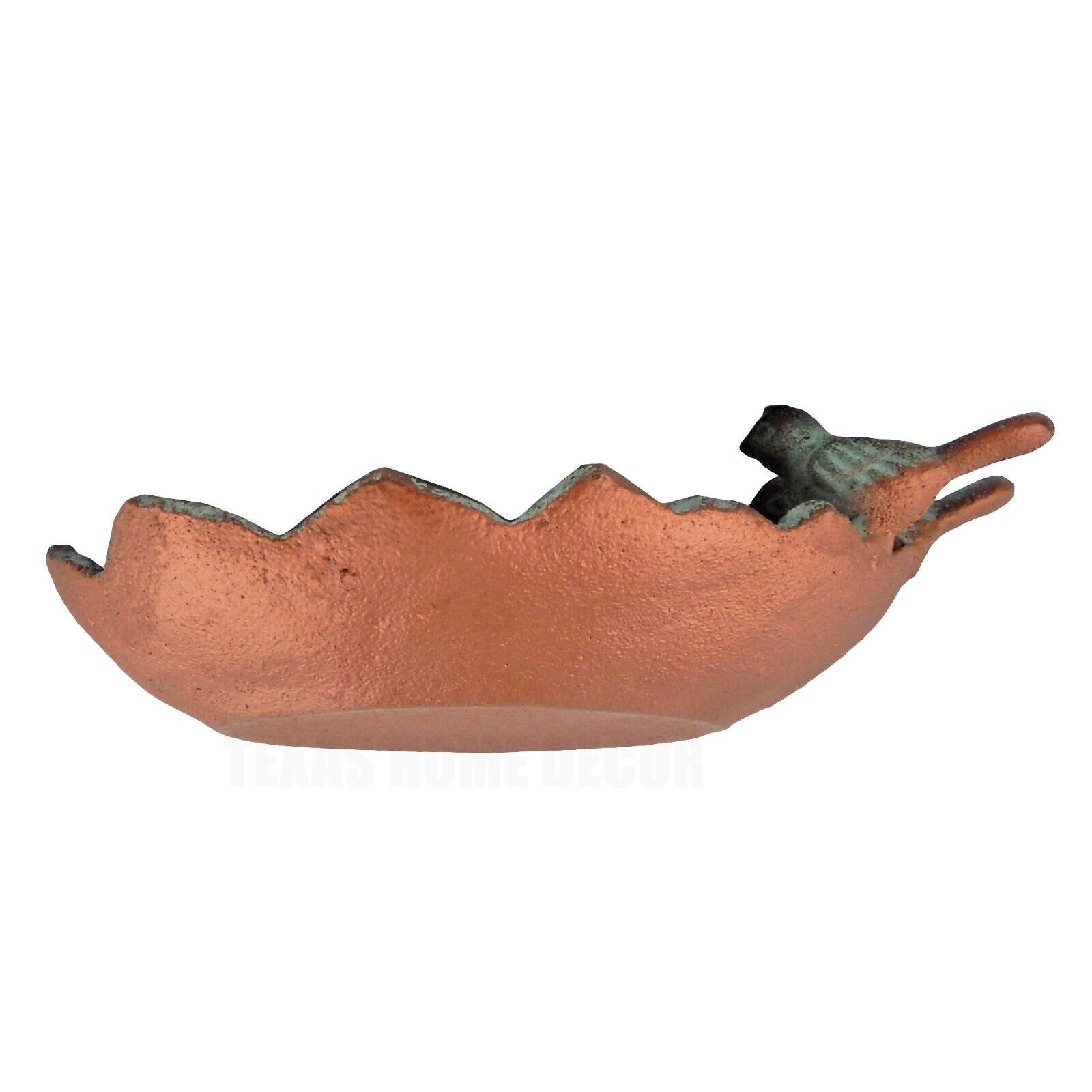 This beautiful trinket dish is perfect for storing your favorite jewelry pieces or keys. The dish features a stunning rose flower design with love birds perched on top, adding a touch of romance to any room. Made of heavy-duty cast iron with an antique copper finish, this dish is both durable and stylish.